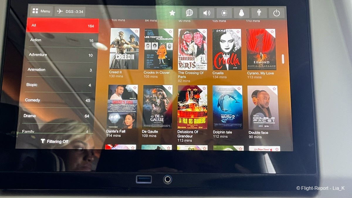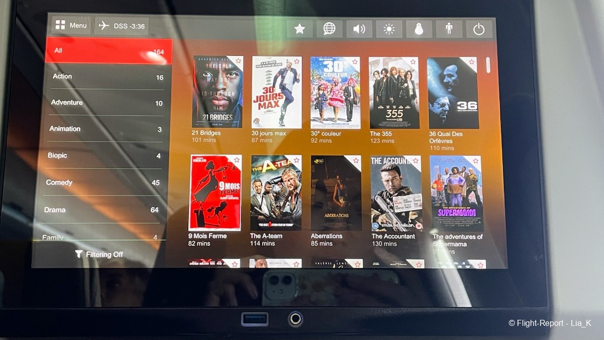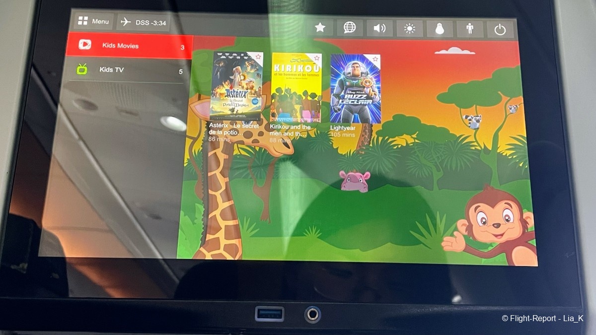 Content-wise, the IFE is… meh at best, which is fine for a 5-hour flight. There's a variety of content, although mainly French. The kids' section is pointless - trust me, there are way more kids' movies than the ones listed in that section.