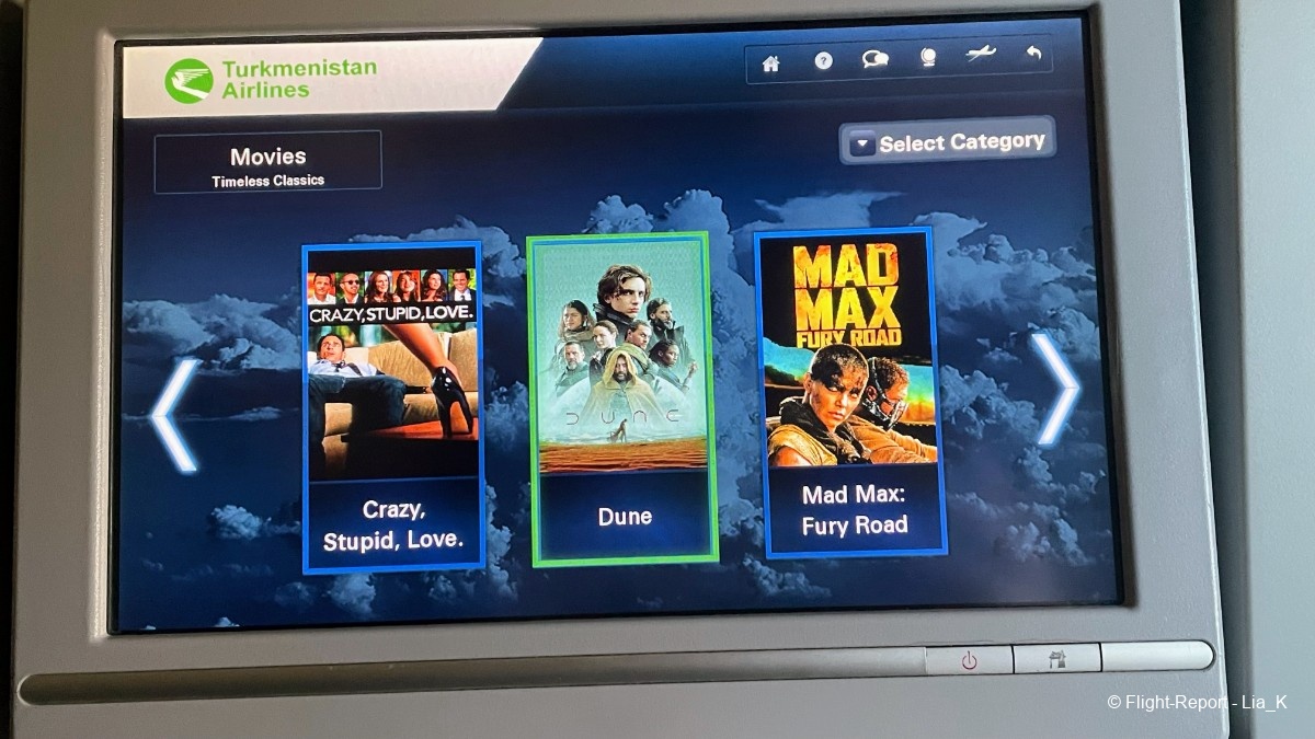I'll start by mentioning that the touchscreen is pointless - it doesn't register 95% of the time. Fortunately, there is a remote so it's not a huge issue (but it does make it rather slow to use). There are around 50 movies and 100 TV shows - it's not great, but it's much, much better than what I was expecting. There's also a good selection of Turkmenistan Movies, which is very unique. Turkmenistan isn't really a country that's talked about… ever… so it's fascinating getting a glimpse into their culture on this trip. I'd love to visit the country one day, although their visa requirement are rather strict.