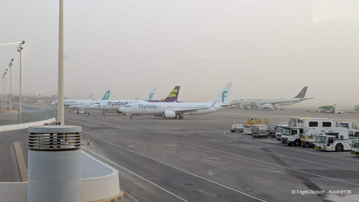 2. Flynas wet-leased 9M-LRK & 9M-LRP (Batik Air 737 Max 8s) alongside a Flyadeal A320, another Flynas A320, and a Saudia aircraft in the background