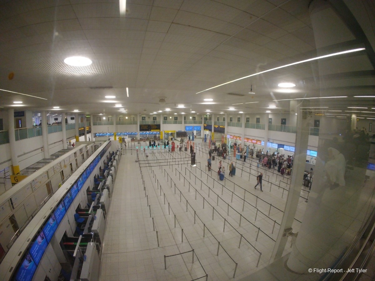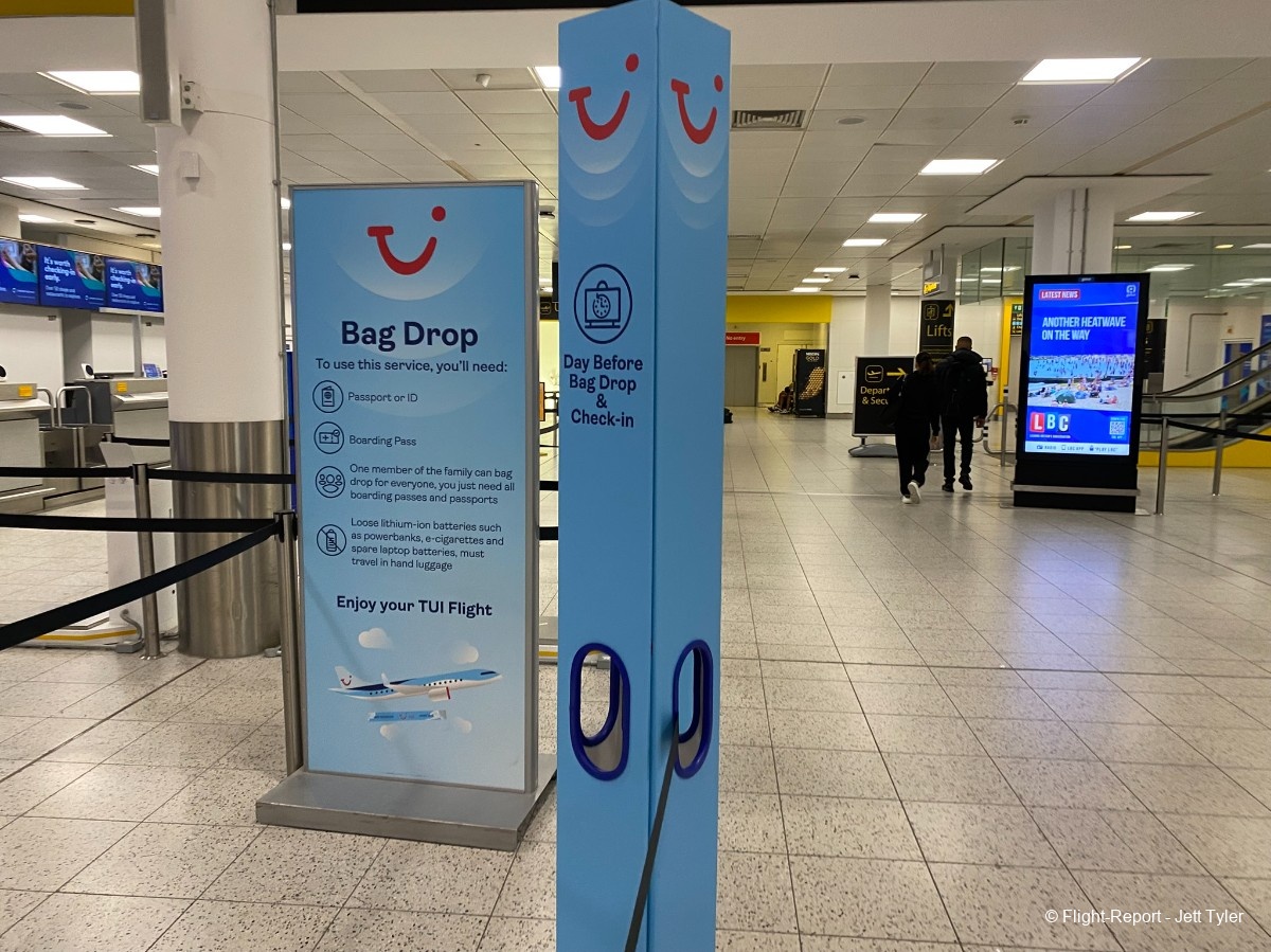 I got off at the South Terminal, whilst most TUI Airways flights go from the North Terminal, a small number now appear to fly from the South Terminal which are the flights listed as "BY" often operated by partner airlines, whist "TOM" Flights operate from the North Terminal. There is a small TUI Airways check in desk to be found amongst the large easyJet presence.