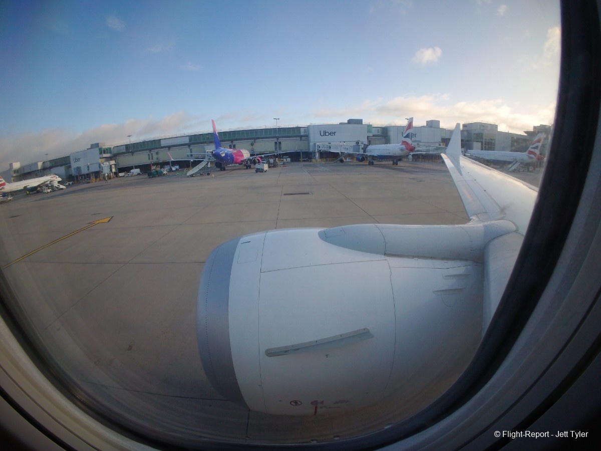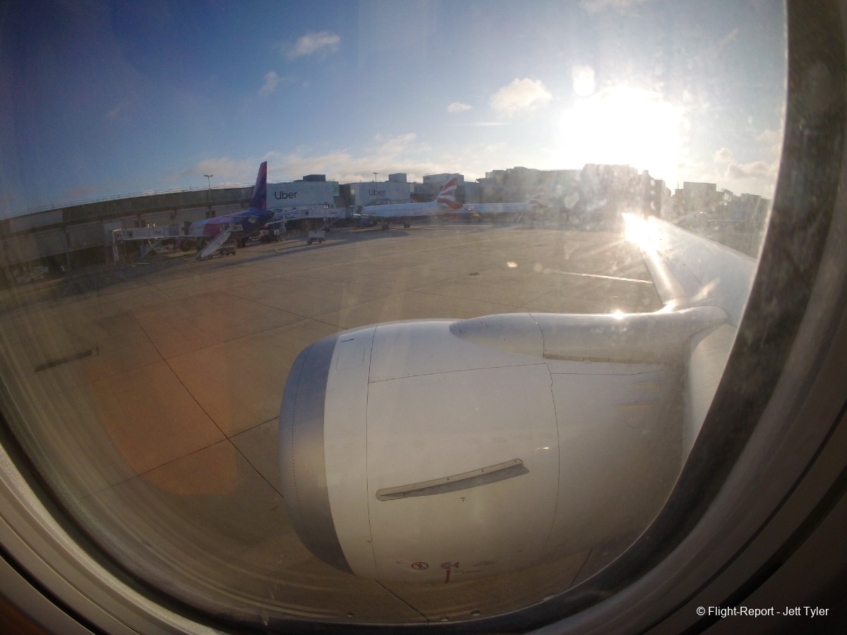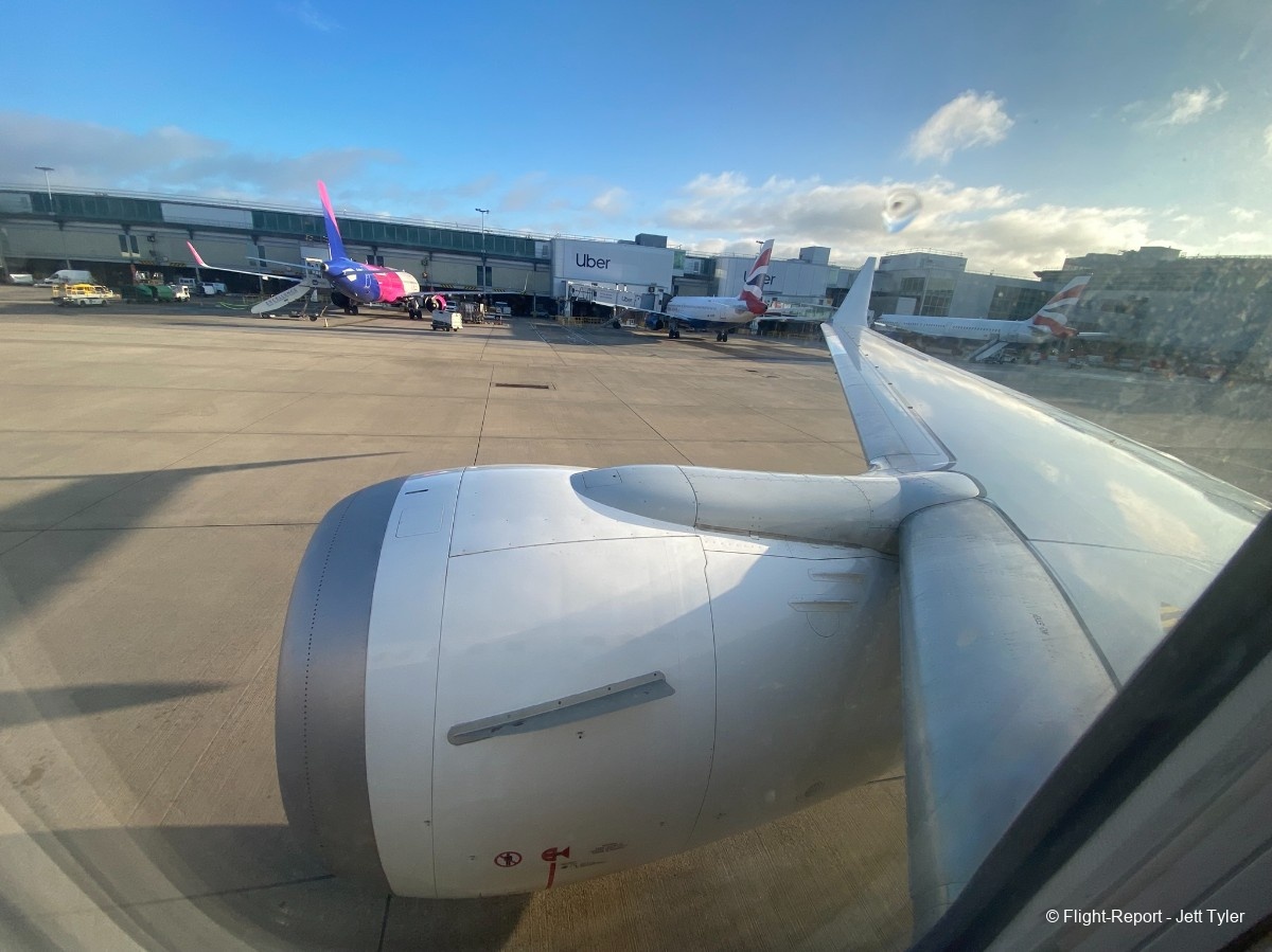 We pushed back on time, as we taxied over to Runway 26L for take off, I noticed the part of the South Terminal we were departing was dominated by BA Euroflyer Airbus A320/A321. A few Wizzair Airbus A321 broke up the dominance of Chatham Dockyard tailfins, and I also spotted further down the pier two Vueling Airbus A320s & a Norse Atlantic Boeing 787 Dreamliner, we followed an easyJet Airbus A321neo who was cleared to go ahead of us.