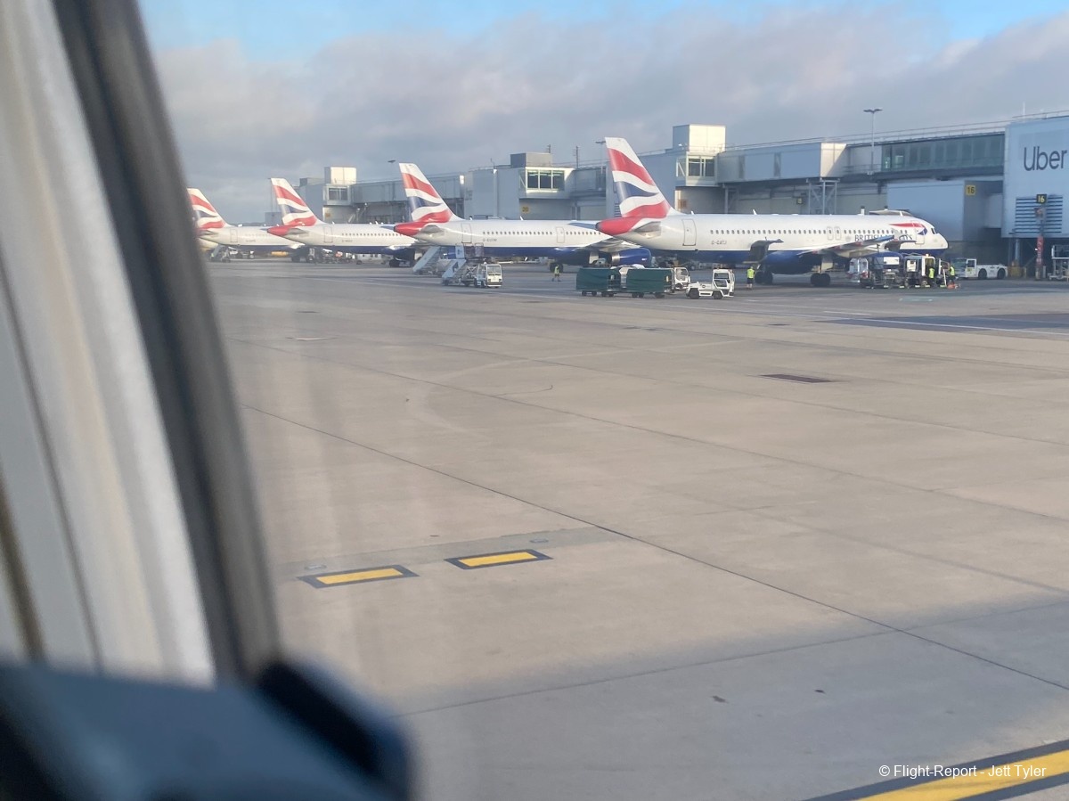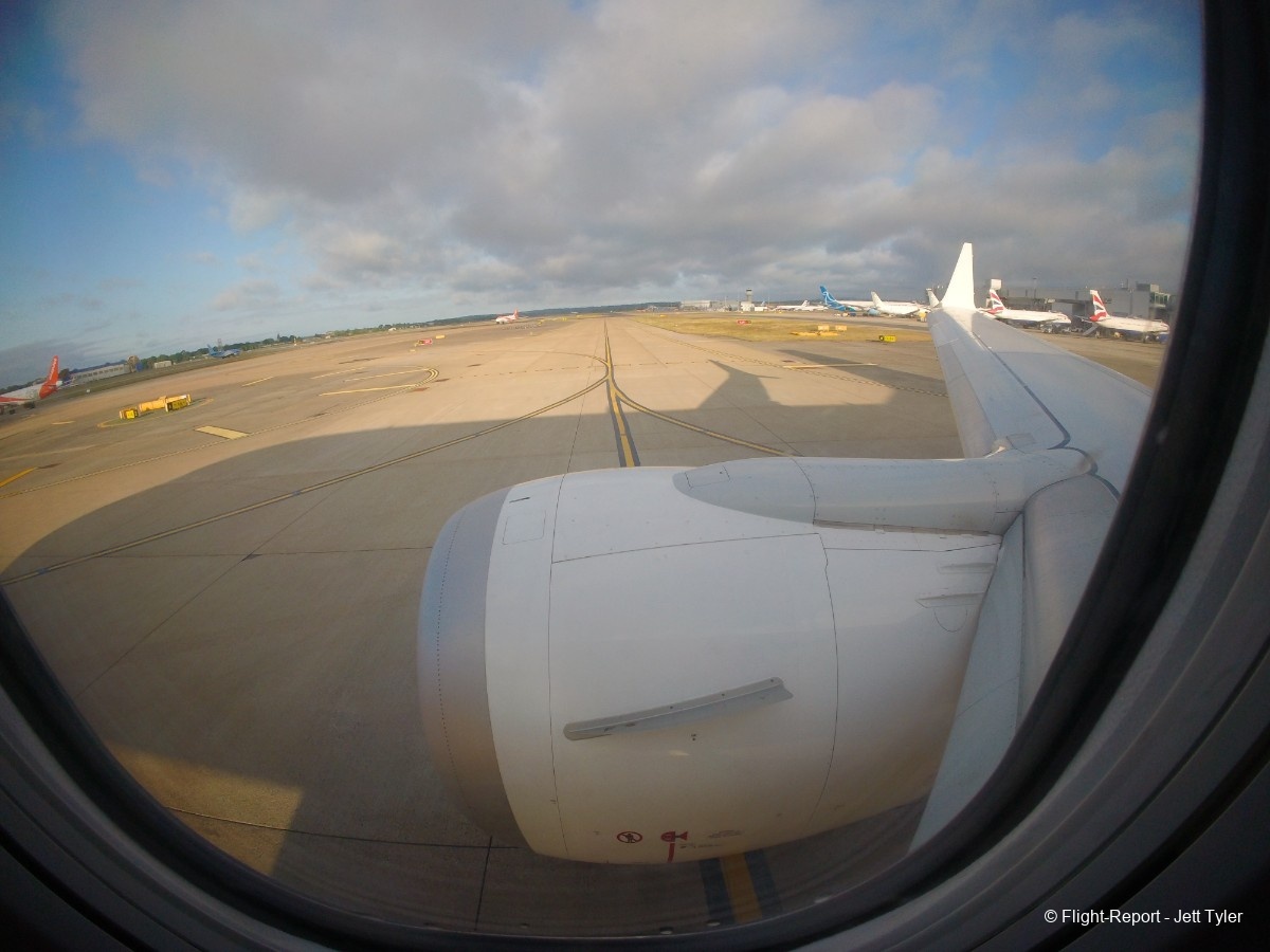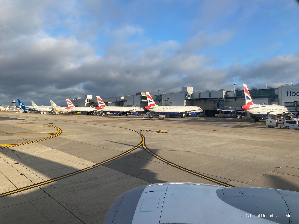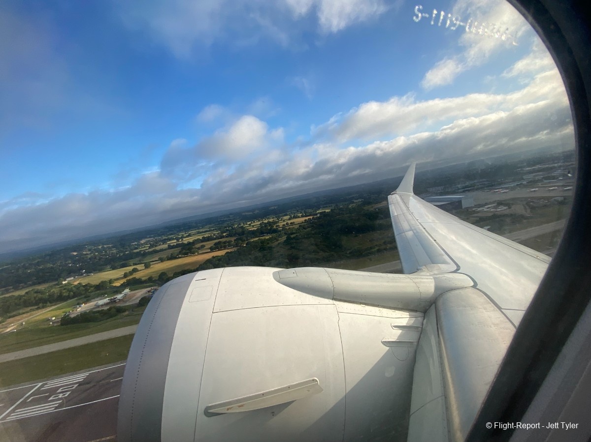We pushed back on time, as we taxied over to Runway 26L for take off, I noticed the part of the South Terminal we were departing was dominated by BA Euroflyer Airbus A320/A321. A few Wizzair Airbus A321 broke up the dominance of Chatham Dockyard tailfins, and I also spotted further down the pier two Vueling Airbus A320s & a Norse Atlantic Boeing 787 Dreamliner, we followed an easyJet Airbus A321neo who was cleared to go ahead of us.