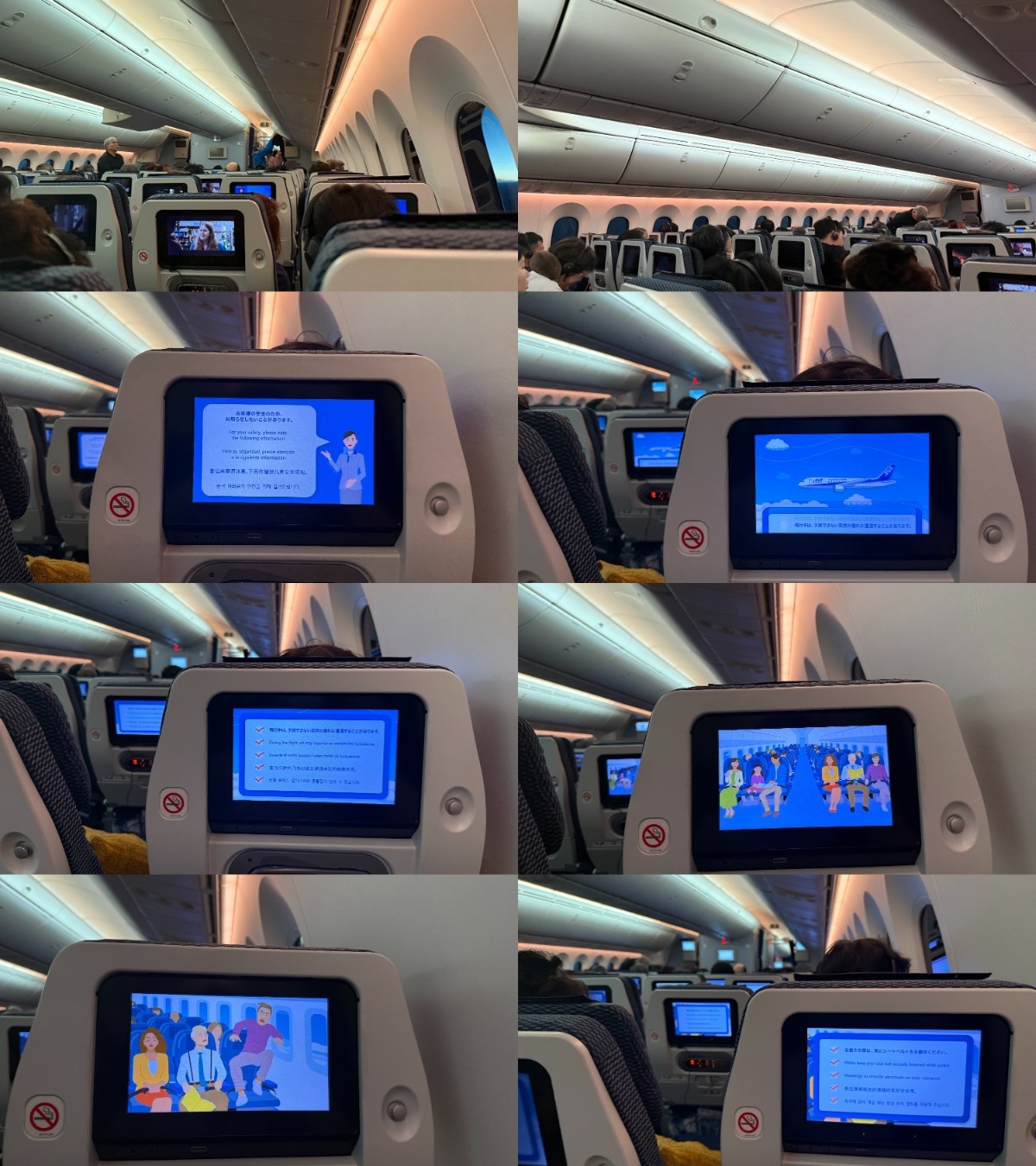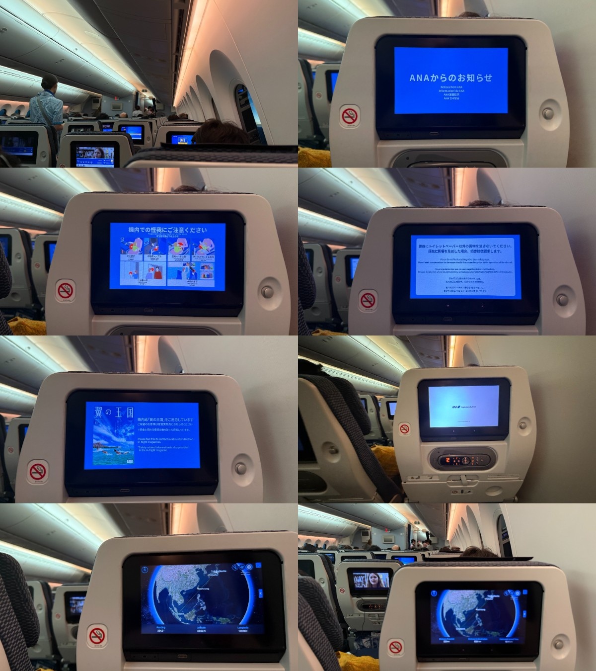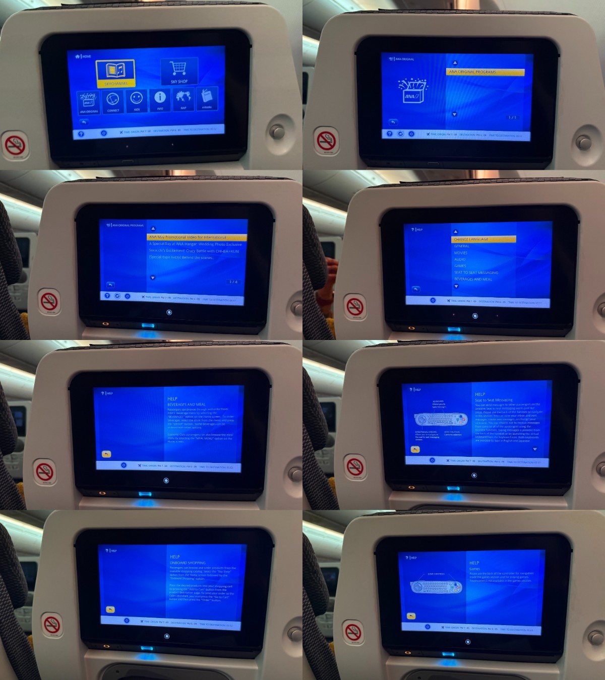 Meanwhile, back inside the cabin, I must say that this 787-9 had a comparatively dated IFE system, with the previous day’s domestic 777-200ER having a slightly more modern interface. Not horrendous, to be sure, but this was most definitely not half as cutting-edge as what I saw on JAL’s domestic A350 earlier that day. The IFE was far too blue and generic, looking like a Windows XP desktop screensaver. The welcome screen was just the airline name, slogan and alliance logo, and the seat number — a bit like those Sony CRT TVs back in the early 2000s.