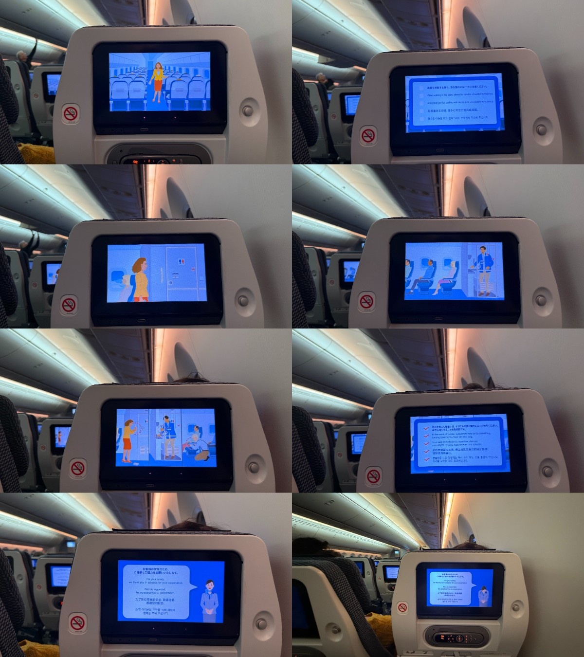 This being a Japanese airline, of course there HAD to be another video about onboard good practices, etiquette and manners, and this too had lovely animated characters that couldn’t help but put a smile on my face. 😇