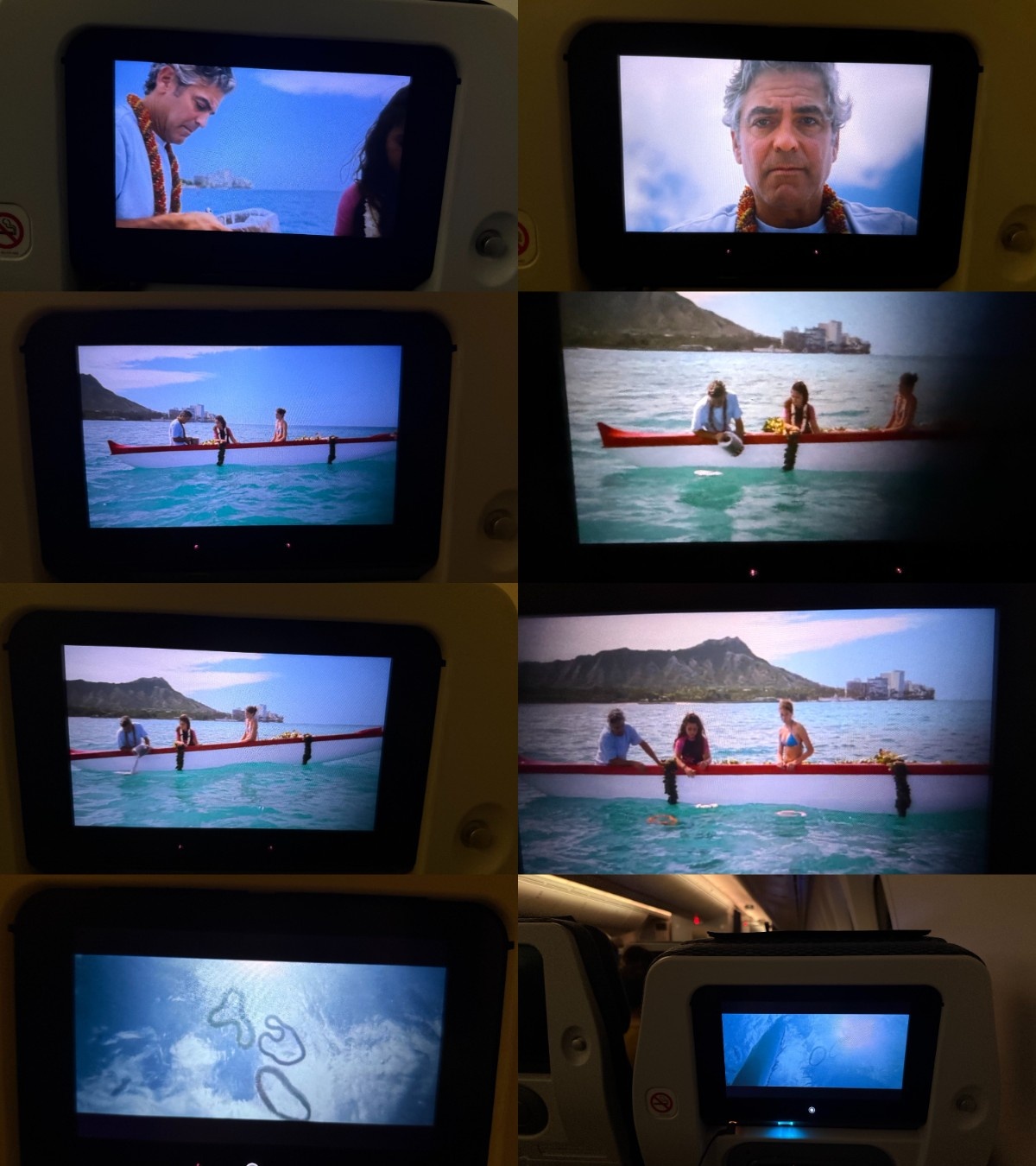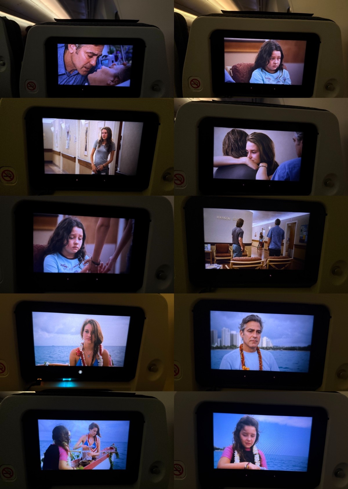 As above, I moved to the Aloha from ANA! section of Hawaii-themed movies, and chose the most emotional-looking movie of the lot. This was The Descendants (2011), where George Clooney battles the impending loss of his vivacious wife from a surfing accident, while also having to prepare two young, impressionable daughters through the stages of grief and acceptance.