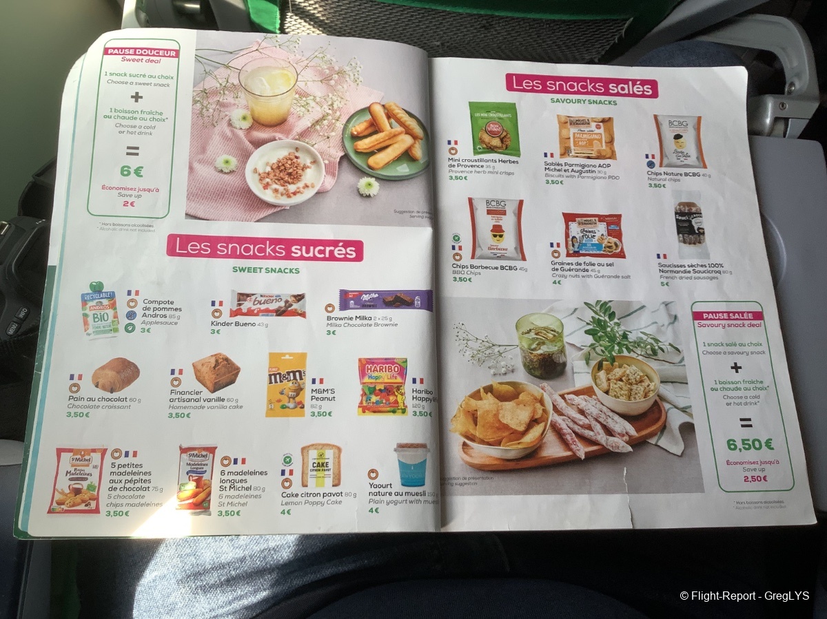 Voici la section "comestible" du catalogue, histoire de refaire le point avec les tarifs pratiqués à bord des vols Transavia.