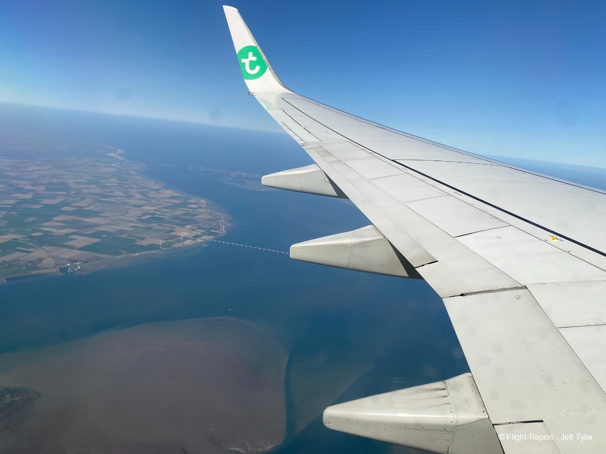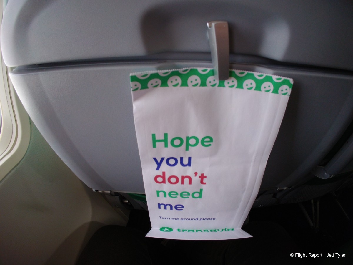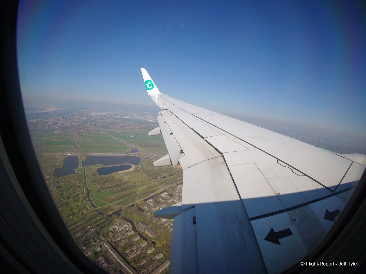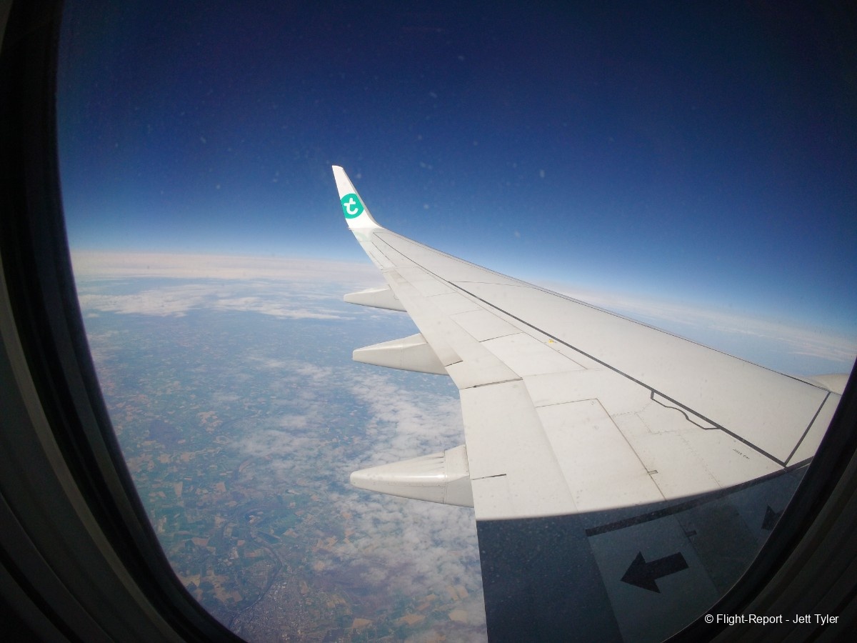 It was nice walking into the cabin of the Transavia 737 and seeing bright green seats taking up the aircraft! Made a change from a very dull combination of Blue, Black or Grey which dominates most European airlines. Though I do wish Aer Lingus would feature green seats, take a page from Transavia! Eventually I made my way to my spot for the next 2 hours- that being Seat 21A, just behind the left wing. The legroom was good enough and I found the seat back pocket was filled with a magazine, café brochure and safety card!