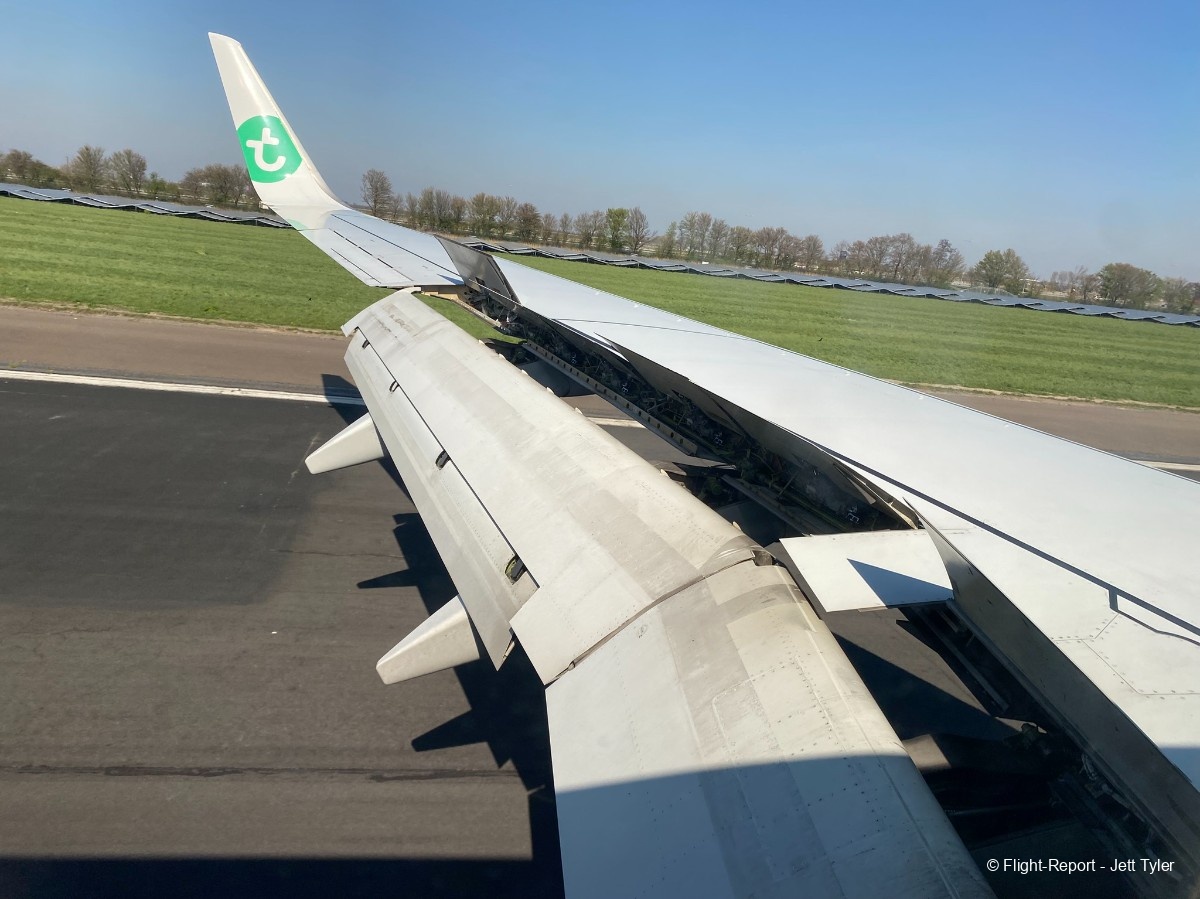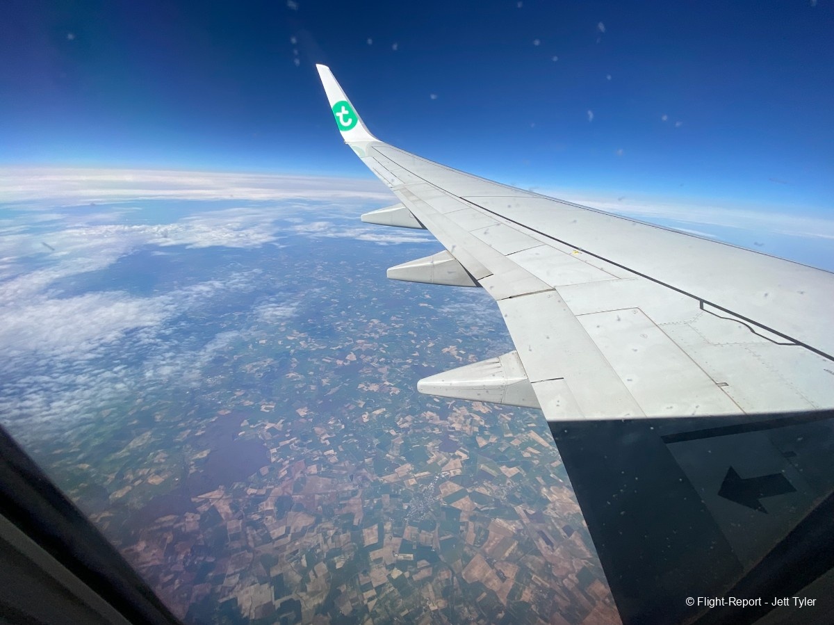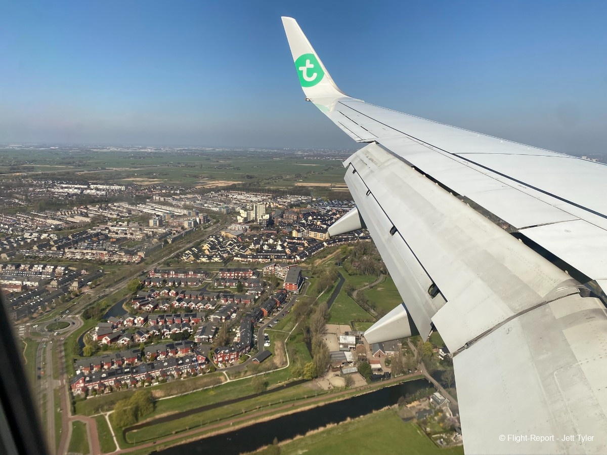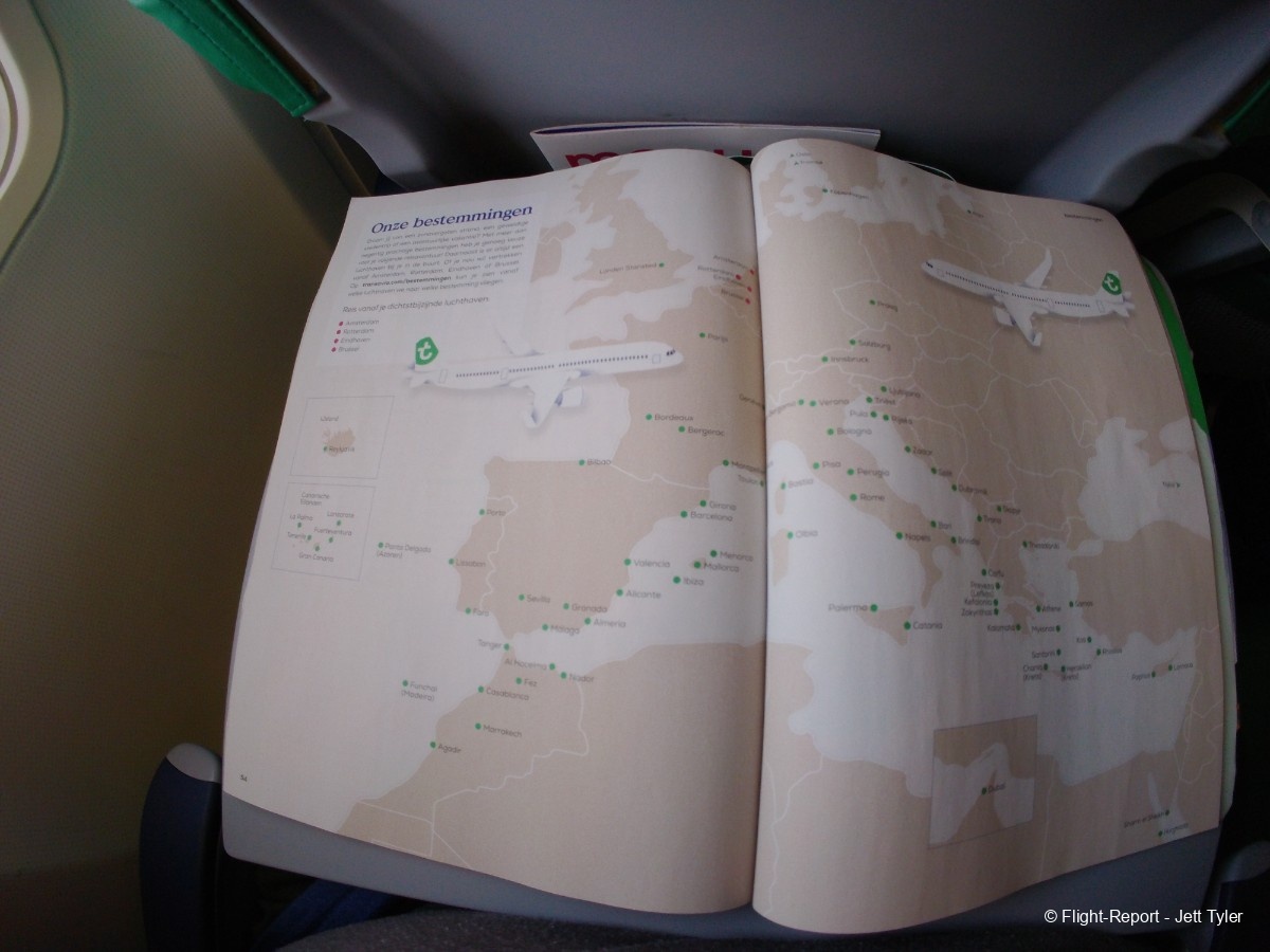 It was nice walking into the cabin of the Transavia 737 and seeing bright green seats taking up the aircraft! Made a change from a very dull combination of Blue, Black or Grey which dominates most European airlines. Though I do wish Aer Lingus would feature green seats, take a page from Transavia! Eventually I made my way to my spot for the next 2 hours- that being Seat 21A, just behind the left wing. The legroom was good enough and I found the seat back pocket was filled with a magazine, café brochure and safety card!