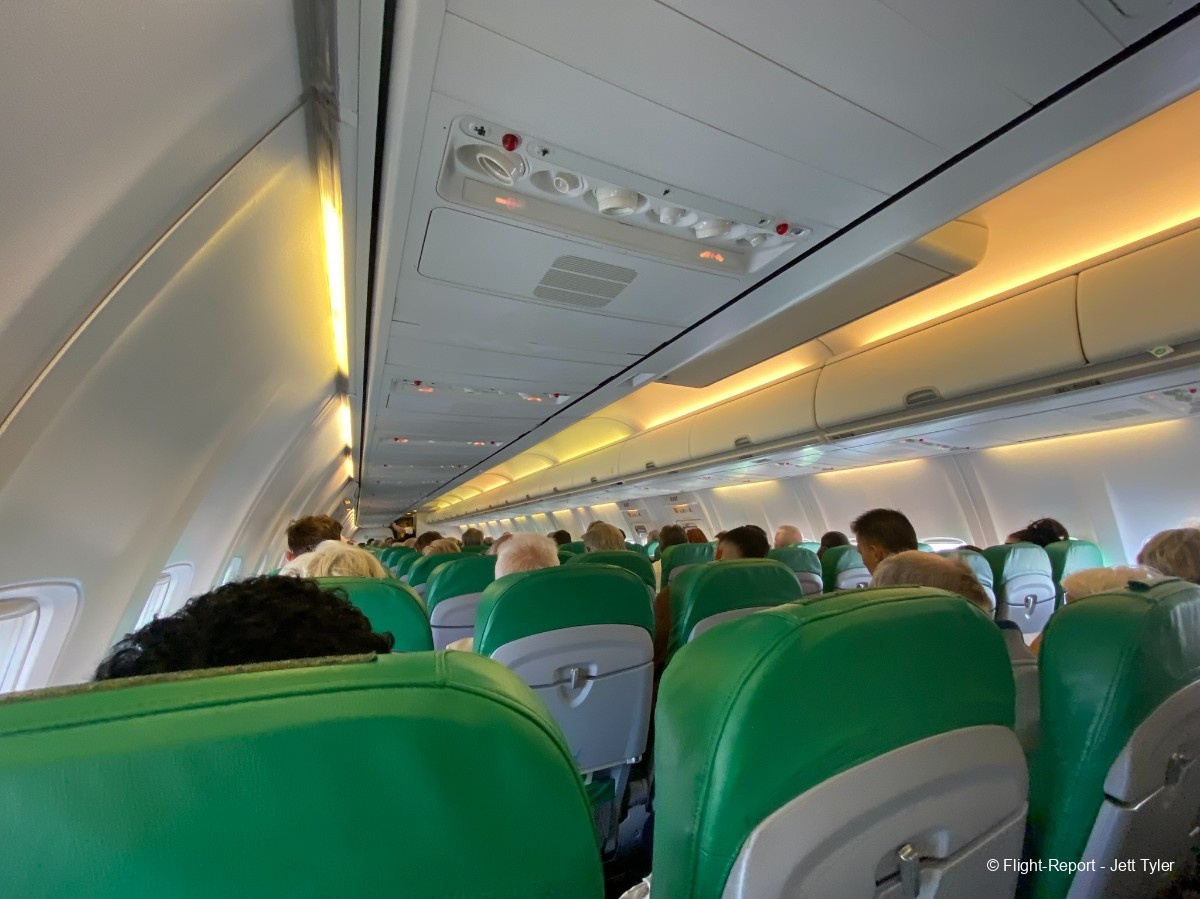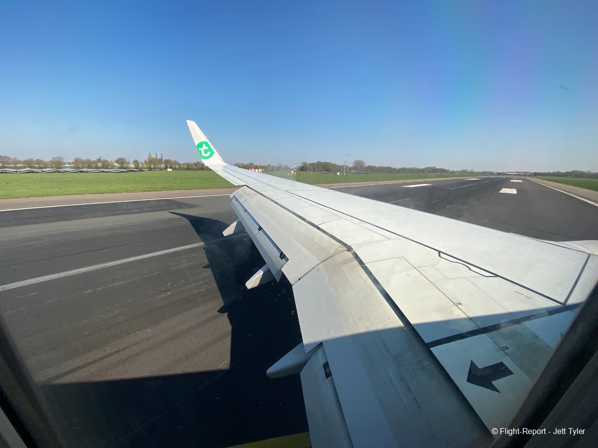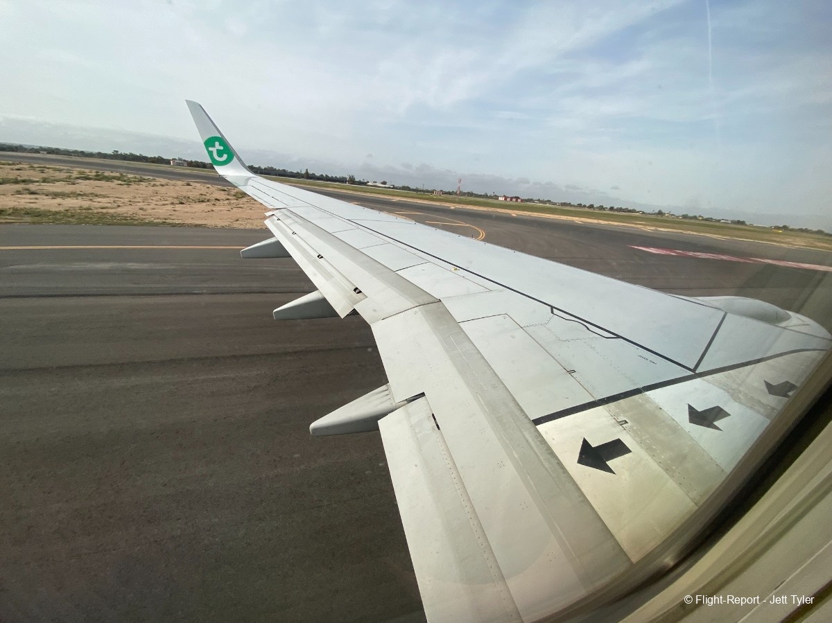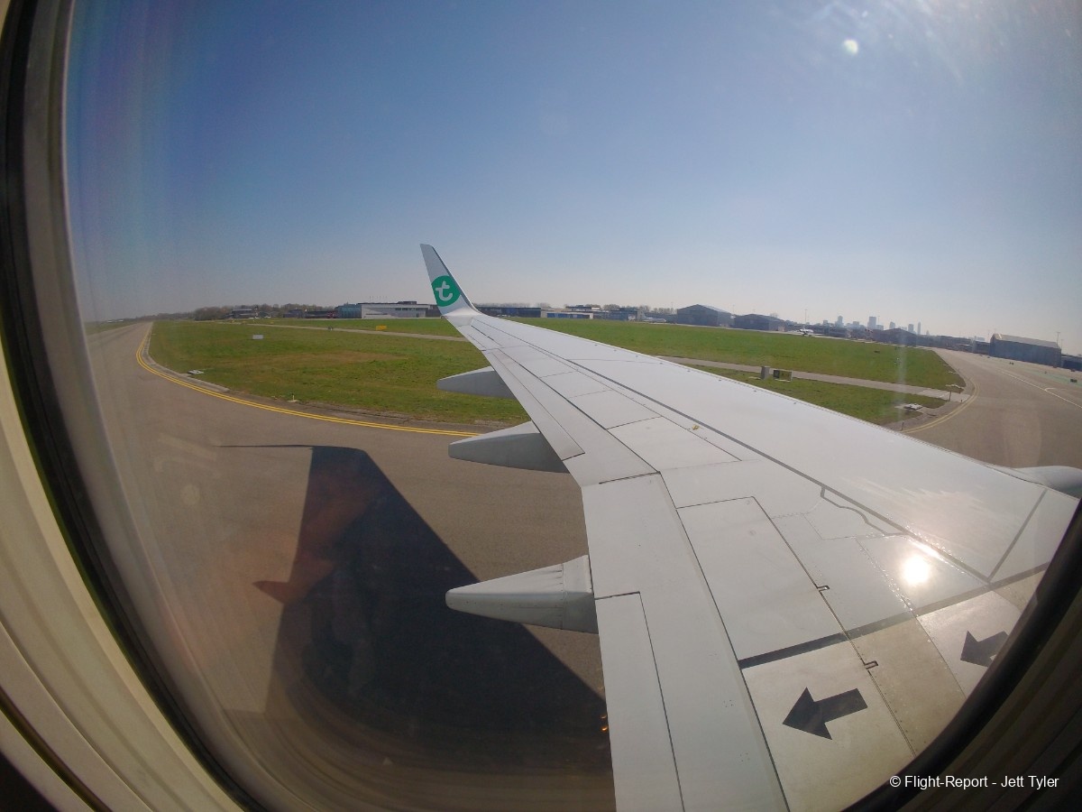 It was nice walking into the cabin of the Transavia 737 and seeing bright green seats taking up the aircraft! Made a change from a very dull combination of Blue, Black or Grey which dominates most European airlines. Though I do wish Aer Lingus would feature green seats, take a page from Transavia! Eventually I made my way to my spot for the next 2 hours- that being Seat 21A, just behind the left wing. The legroom was good enough and I found the seat back pocket was filled with a magazine, café brochure and safety card!