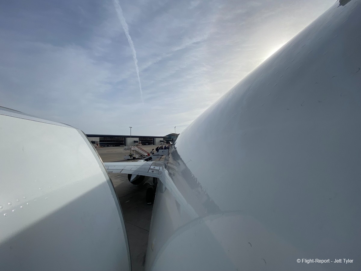 I was on the second of three bus rides that took place for our flight. It was a little slow as the flight was reasonably full that morning, but I was excited to get some good photos of the aircraft once we pulled up to it. This was exciting for me ticking off two airports I'd not flown to/from before this trip as well as adding a new route and airline!