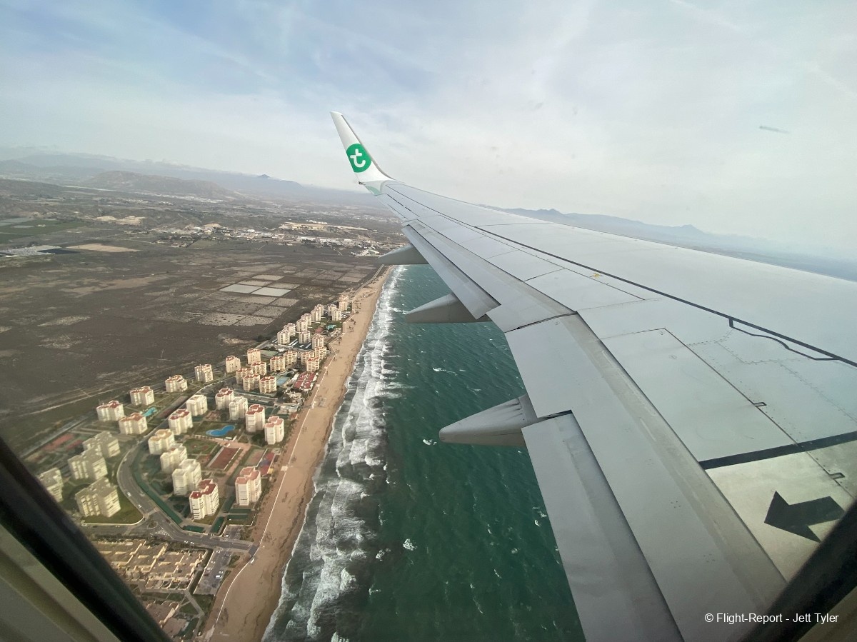 We lined up on Runway 10 and began rolling out for take off, just as we passed the Terminal we boarded the bus gate we started to rotate and leave the ground. Within a minute of lifting off the Runway we flew over the town of Urbanova, which I saw from the left-side of the Boeing 737, it gave some great views as we flew out over the Mediterranean Sea, I could also see the main city of Alicante in the distance, where I had come from that morning.