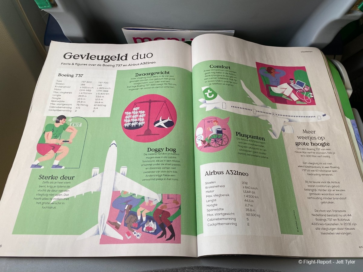 Once we'd taken off, I had a look through the seat back contents in more detail. The sickbag looked quite appealing and not a straight up white bag like a lot of airline's are going for. I also dived into both the inflight magazine and the inflight café. The Transavia route map for the Dutch based operation is quite extensive, you could in 2x flights basically fly from Iceland to Dubai… though I'm not sure about a 6 hour flight in a Transavia A321neo or Boeing 737-800 from the Netherlands to the UAE…