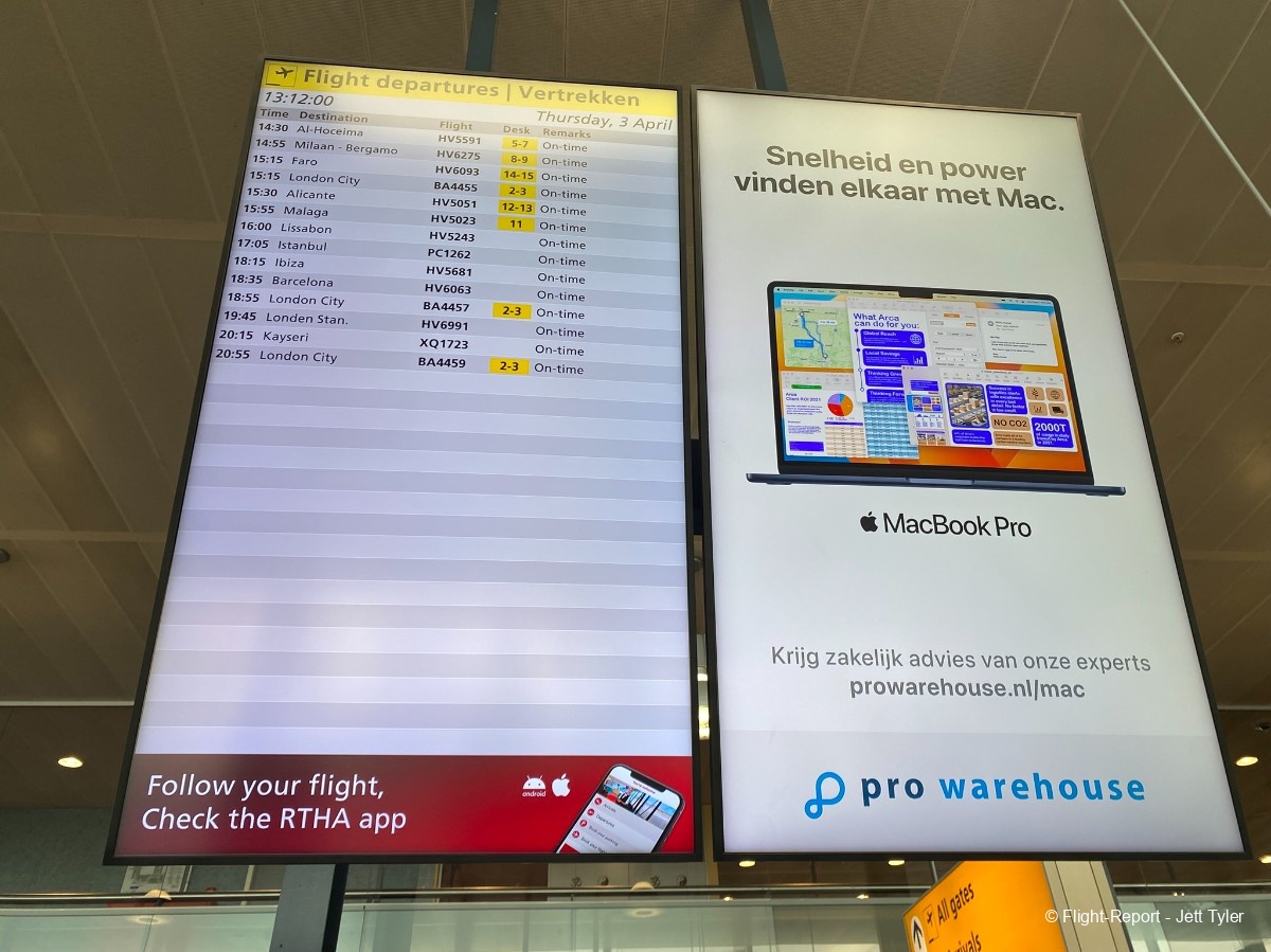 It was quite nice visiting Rotterdam Airport and knowing everything was a short walk around and not having to walk a good mile like you need to do sometimes at Schiphol Airport! The departure board was very quiet for the day, but I went to get a few photos of my Boeing 737 and some of the others from the Panorama Terrace at Rotterdam the Hauge- Yes the famous Schiphol observation deck shares its name with the one at Rotterdam!