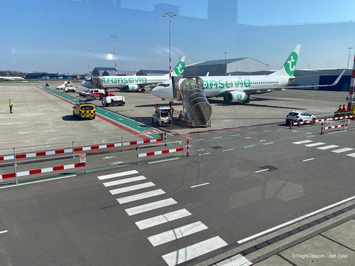 Leaving the aircraft I got some nice final shots, it was a short walk to the entrance to the Airport, coming in from within another EU country, it would mean arriving into what is effectively a domestic arrivals hall. Looking back I saw my plane joined by three other Transavia Boeing 737s.