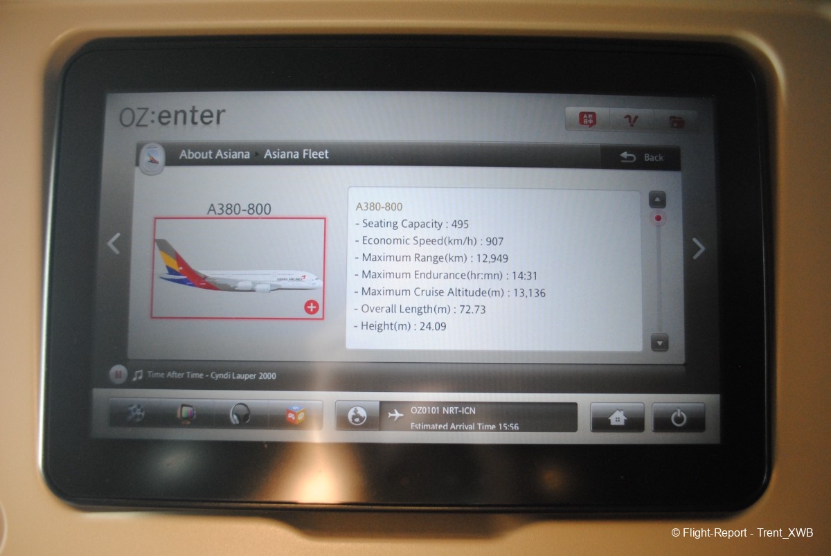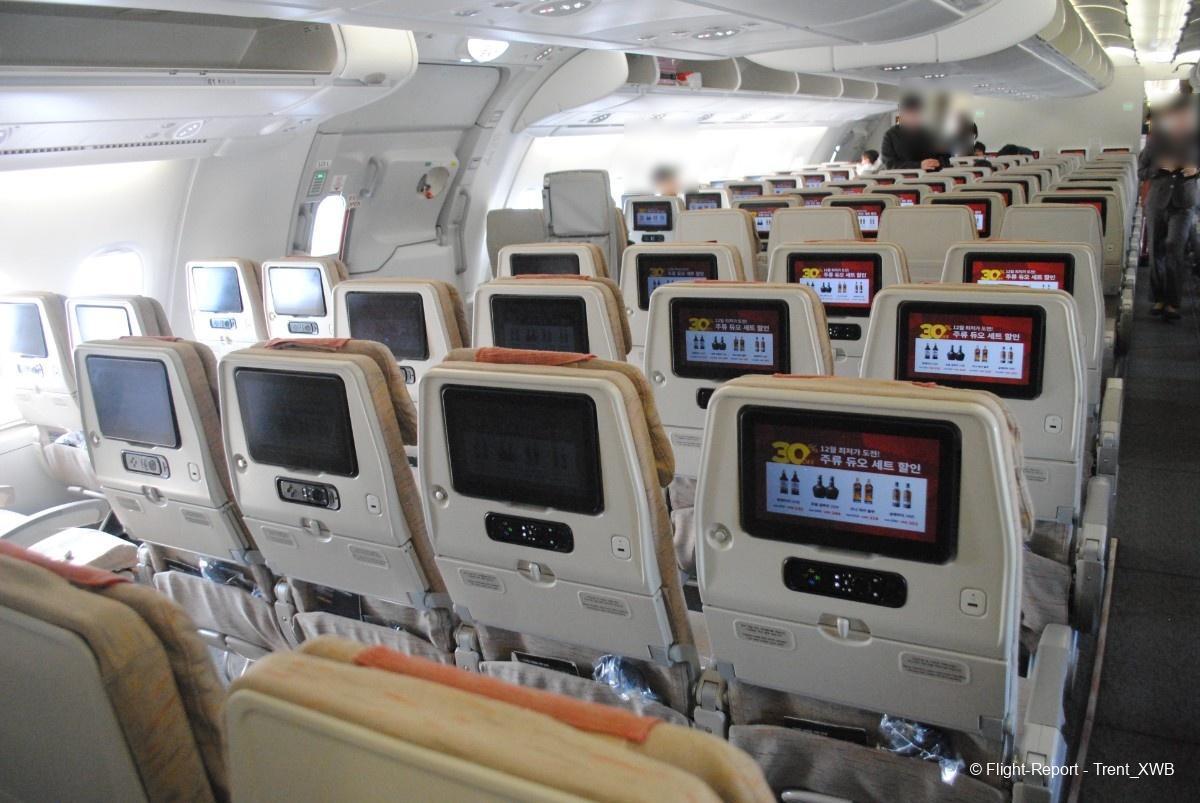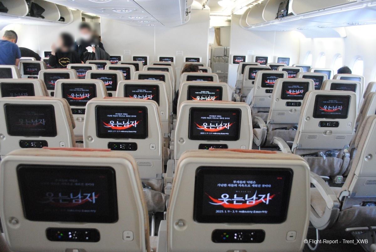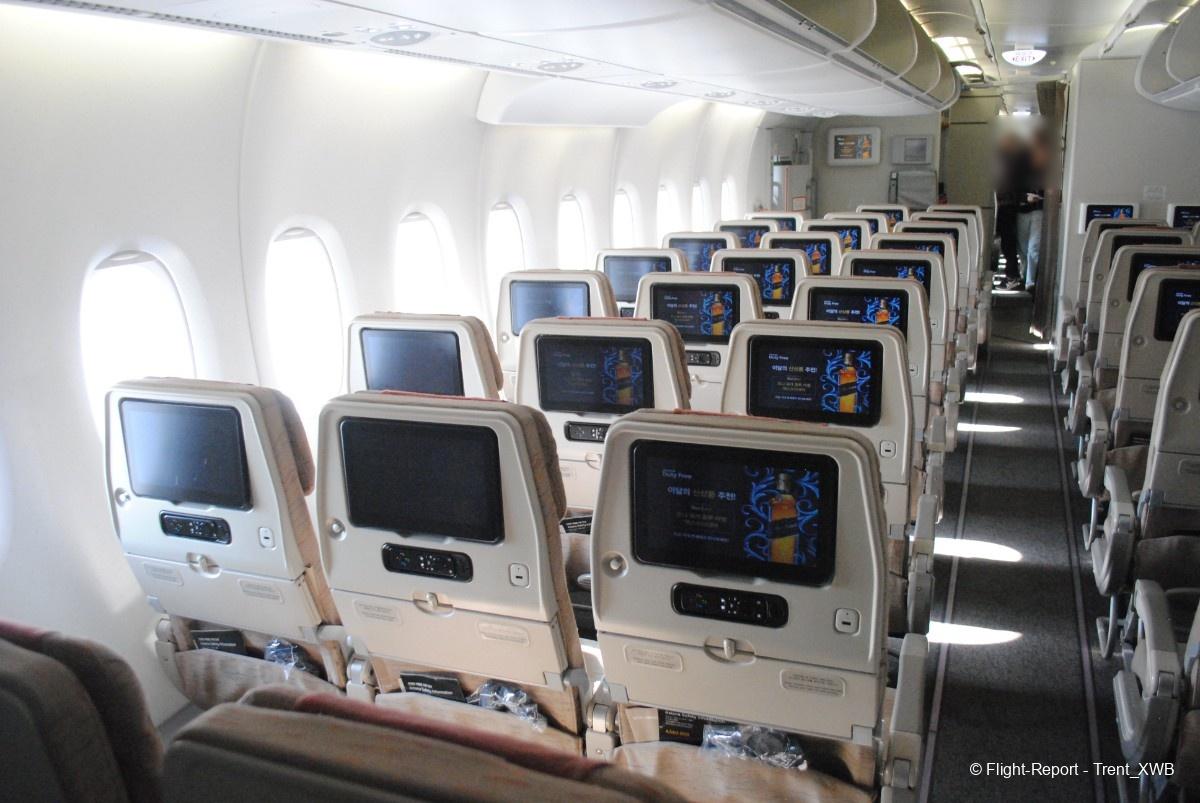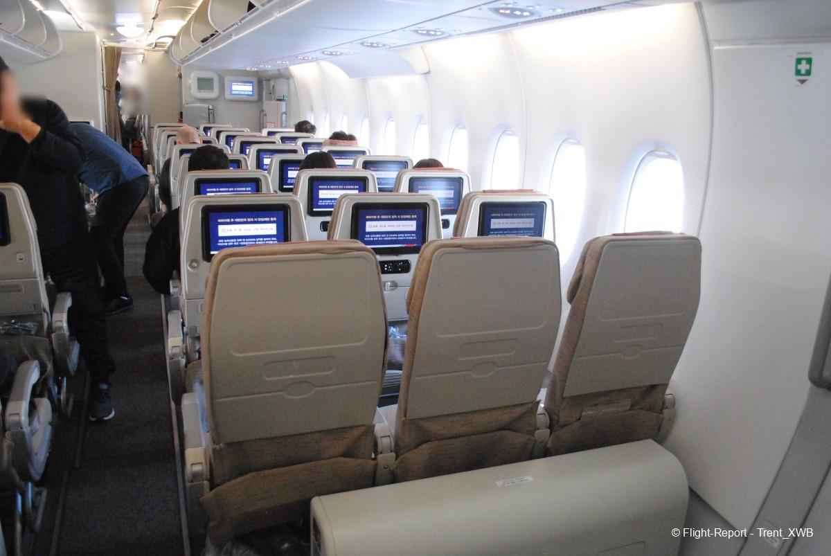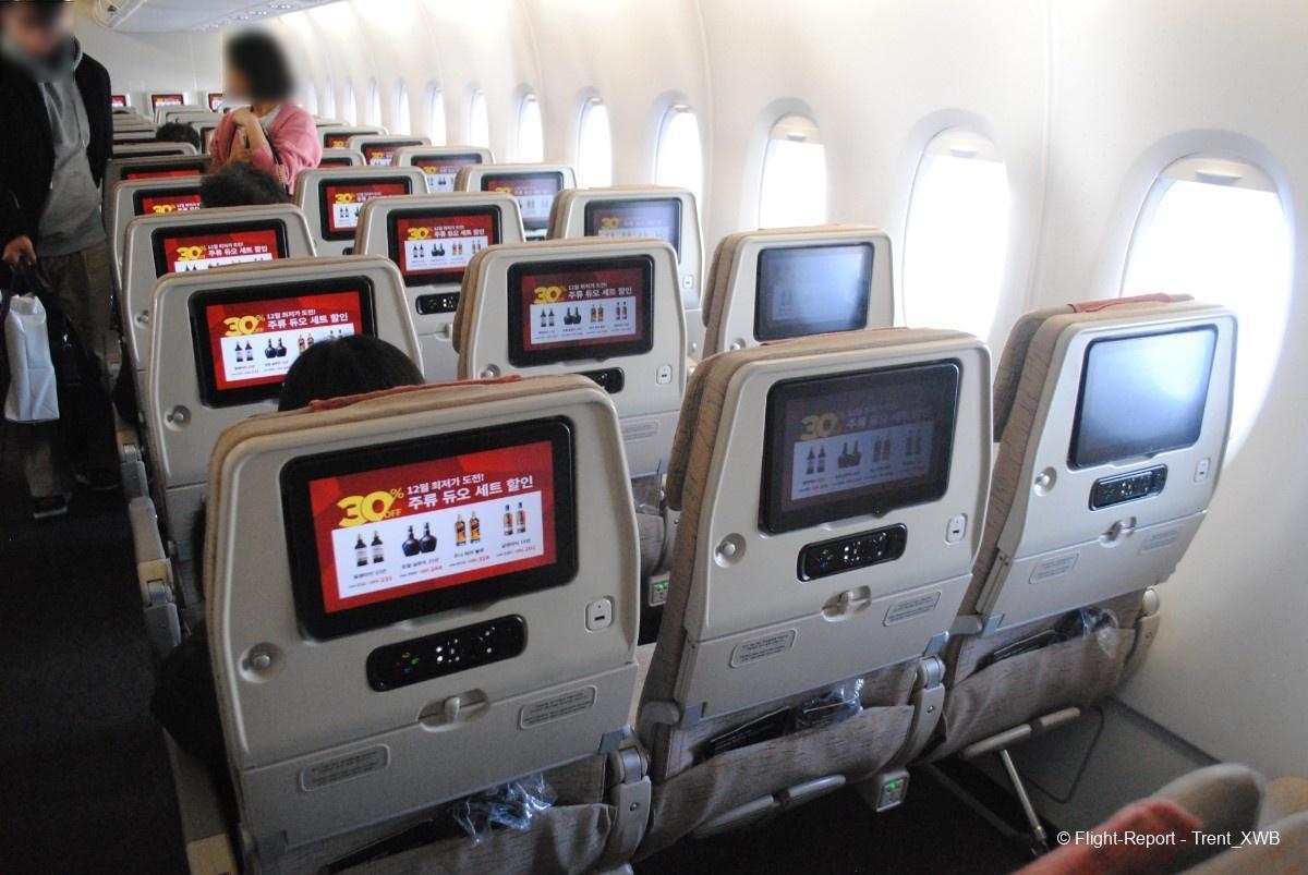 The seatwidth is whopping 48.1 cm (18.9"). 1.6" more than the same Z300 in Korean Air B747-8i. Wooow - these Z300s seem to be the world's widest economy seats! The lateral spaciousness of A380 is unparalleled. There is simply no other aircraft type that can accomodate 3-4-3 economy with the seatwidth of 18" or more, and it's honest to say that OZ A380 with its almost 19" Y seatwidth provides premium economy spaciousness even in economy! Speaking of 2-4-2 (upper-deck) layout, though, there is another a/c type with such layout and such seatwidth - JAL B789/788 in international configs with their famous "Sky Wider" economy (JL is the only airline in the world still retaining 8 abreast economy in 787s. The second was NH, but it left this club long ago for typical tight 3-3-3). Symbolically, JL's Sky Wider is based on the same Safran Z300 seats (just with some customization). So, flying OZ upper deck economy is somewhat similar to flying JL's 787.