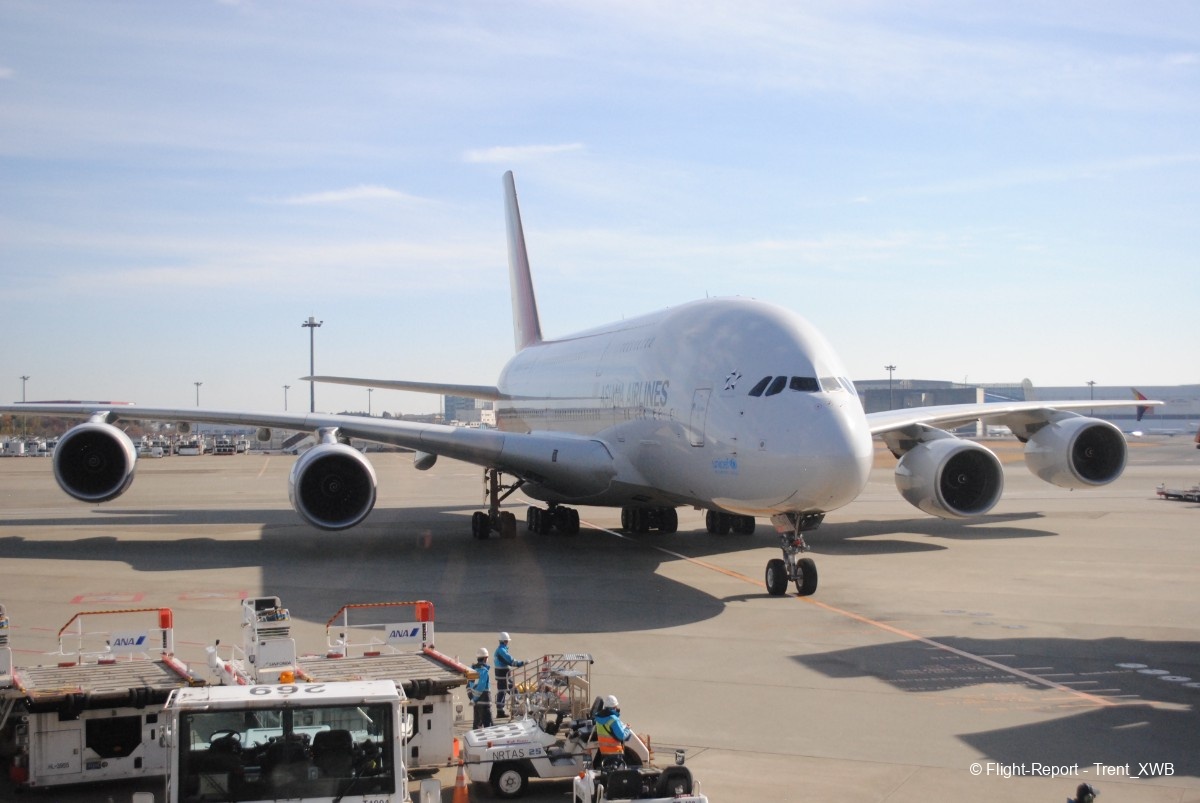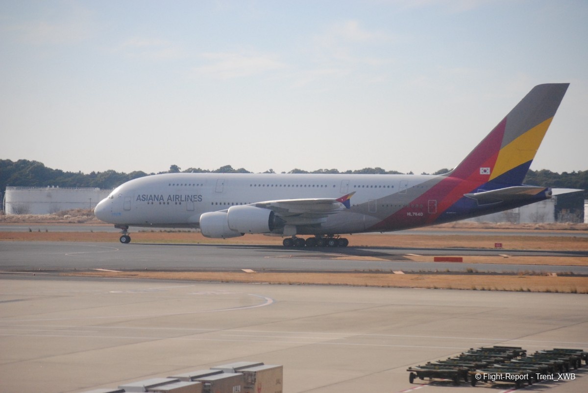 In my second FR here I want to present a detailed review of Asiana A380-800 on the flight from Tokyo Narita (NRT) to Seoul Incheon (ICN) - then world's shortest A380 flight, taken in December 2024. Actually I took this flight (OZ101) even twice - 4 and 18 December 2024, coincidentally on the same A380 (HL7640) and both in upper-deck economy. This FR is devoted to the second flight, but I will complement it with some photos from the first flight. It was worth it, because from June 2025 OZ withdrew their whalejets from Narita flights and currently these flights are served by mix of B777-200ERs, A350-900s and A330-300s.
