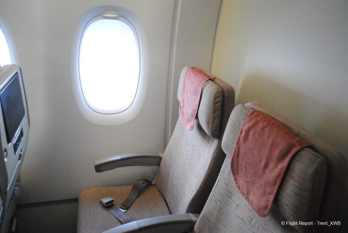 Surprisingly, there Z300s feature less padding than KE ones in B748s, but, considering the ergonomic shape of the seat, the seatback comfort is still fine. I'd easily fly in these seats 14-hours ICN-FRA flight, which OZ recently upgauged from A359 from A380. The row pitch is excellent (advertised as 32") with a lot of space for me (177 cm tall).