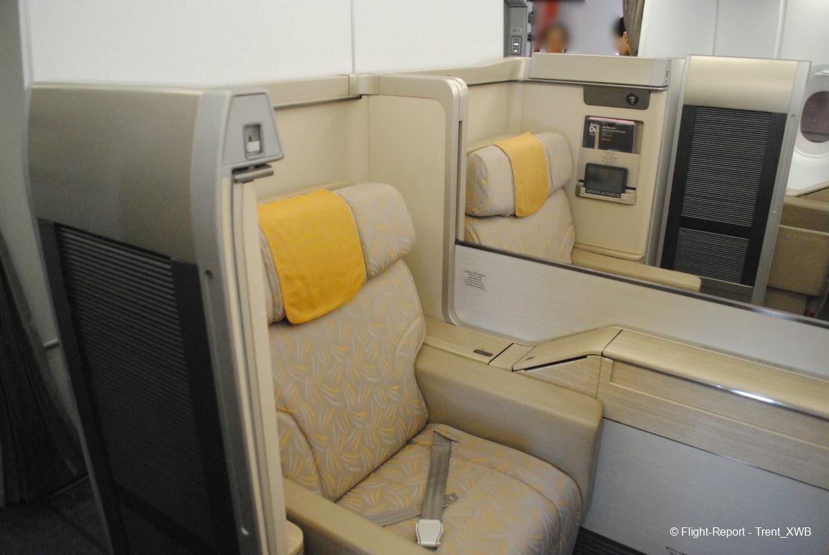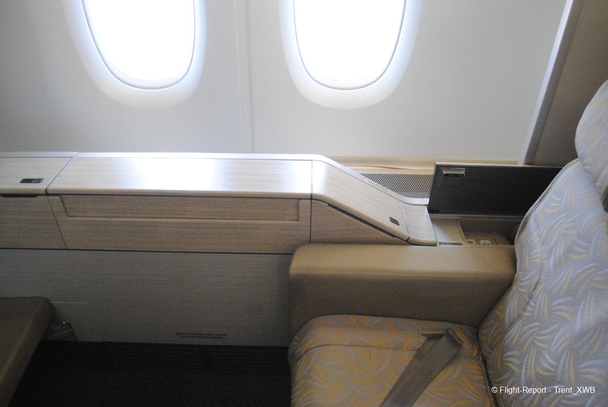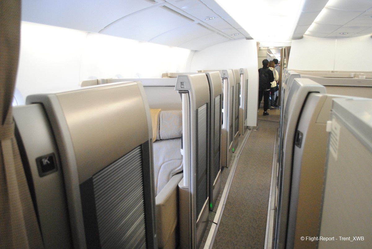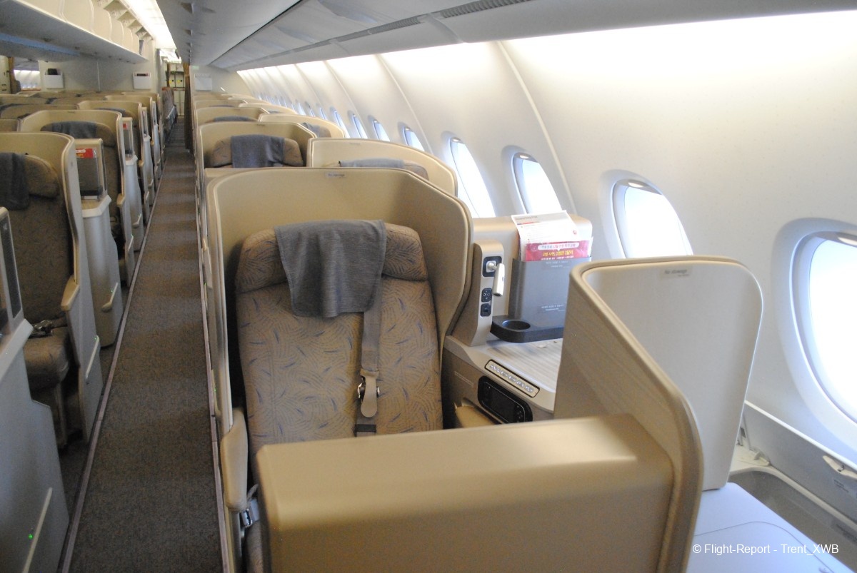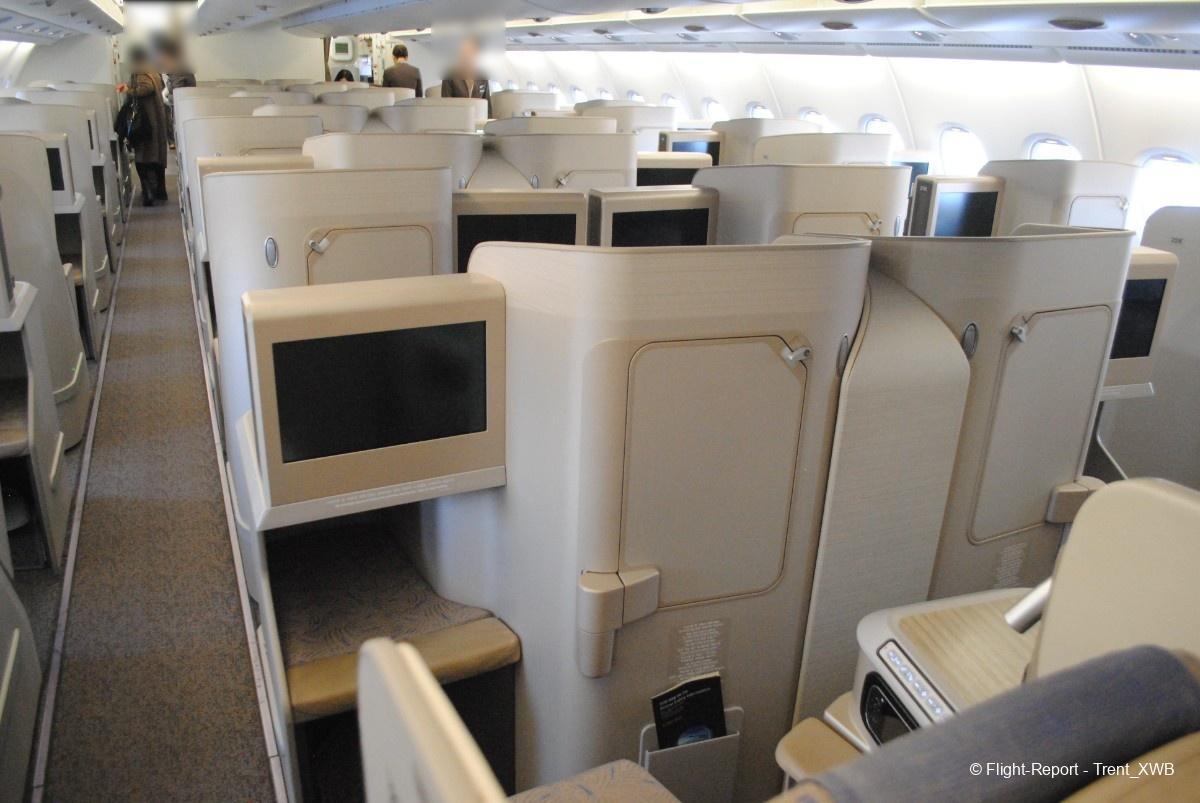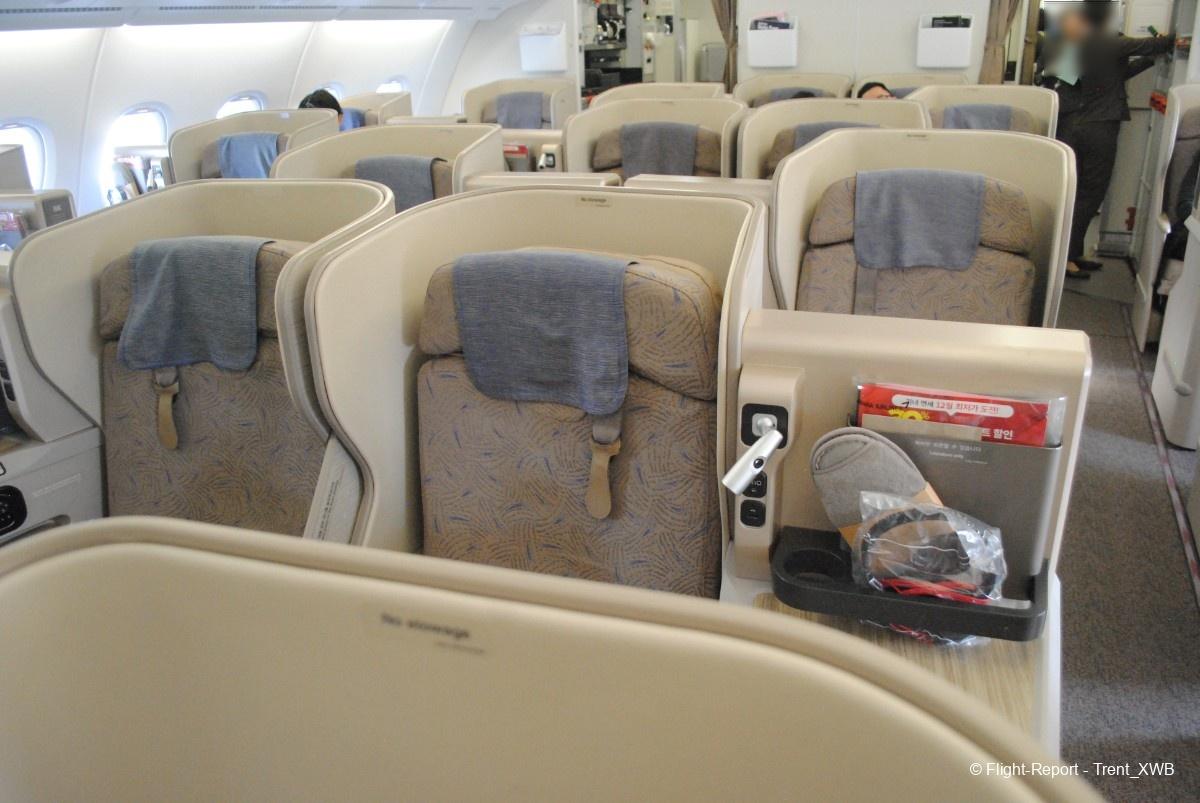 In the very front of the lower deck there is a first class cabin, which consist of 12 1-2-1 suites (based on B/E Aerospace Oasis platform). OZ currently calls it "business suite" and sells like a kind of "business plus" without real first-class service.