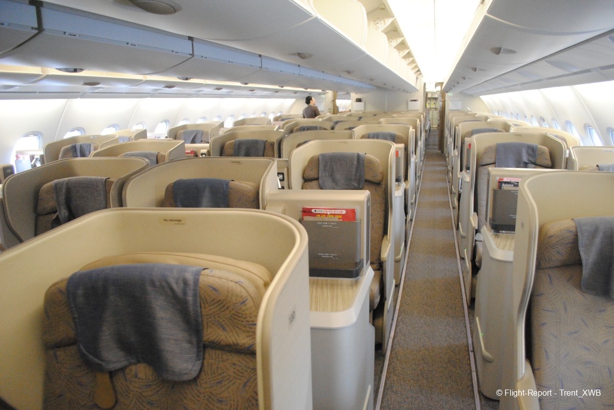 And there is a A380-specific feature that JL 787s don't have: the sidewall storages of the upper deck, which additionally increase already ample lateral space.