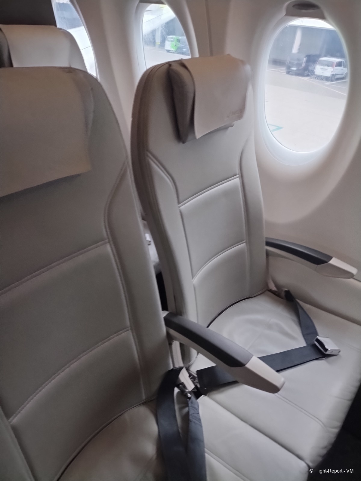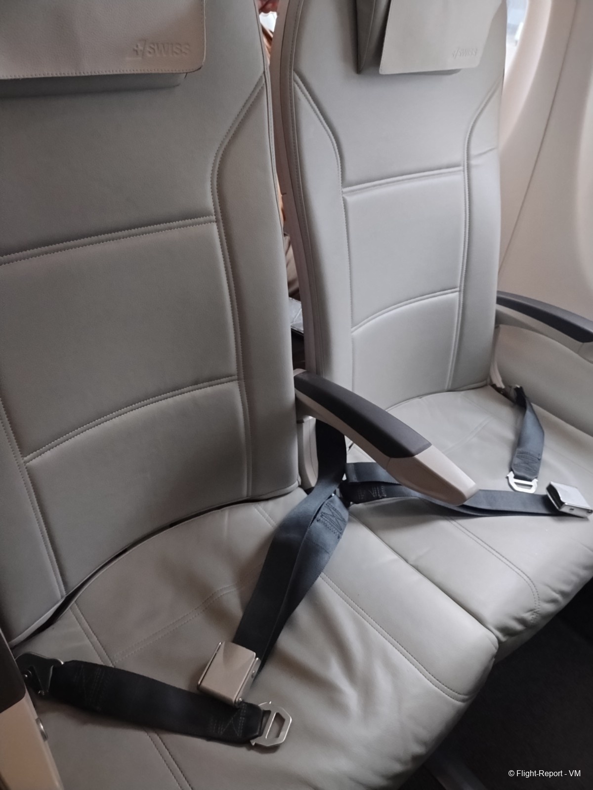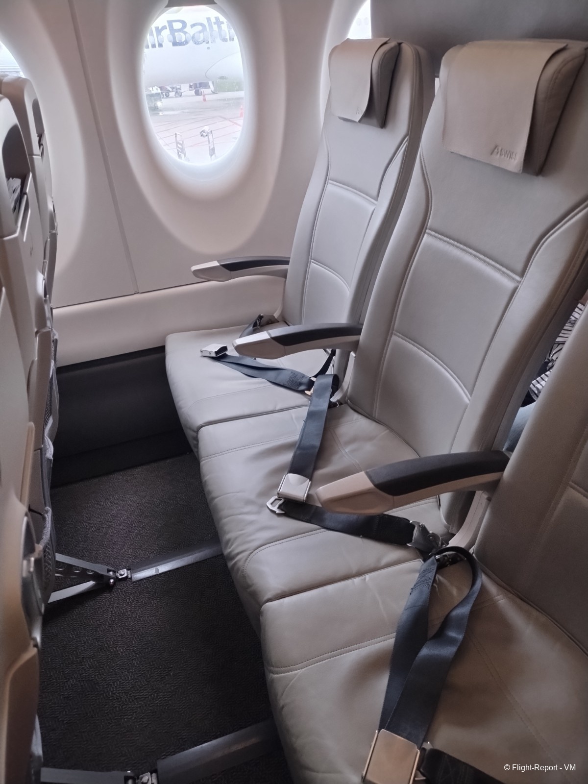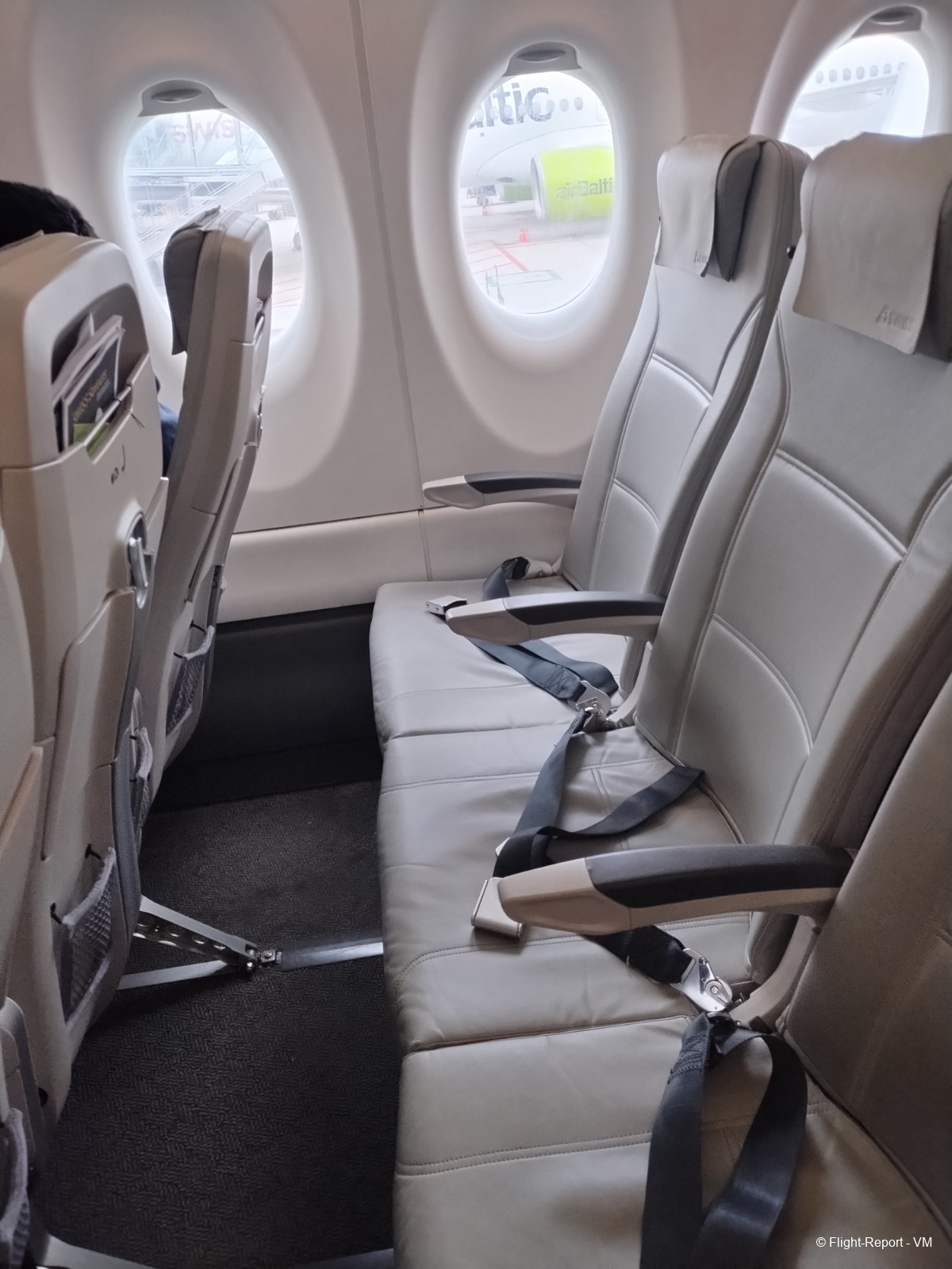 The plane had airBaltic seats, and the mini-screens were in airBaltic colors, but the (nonadjustable) headrest had covers with the SWISS logo.