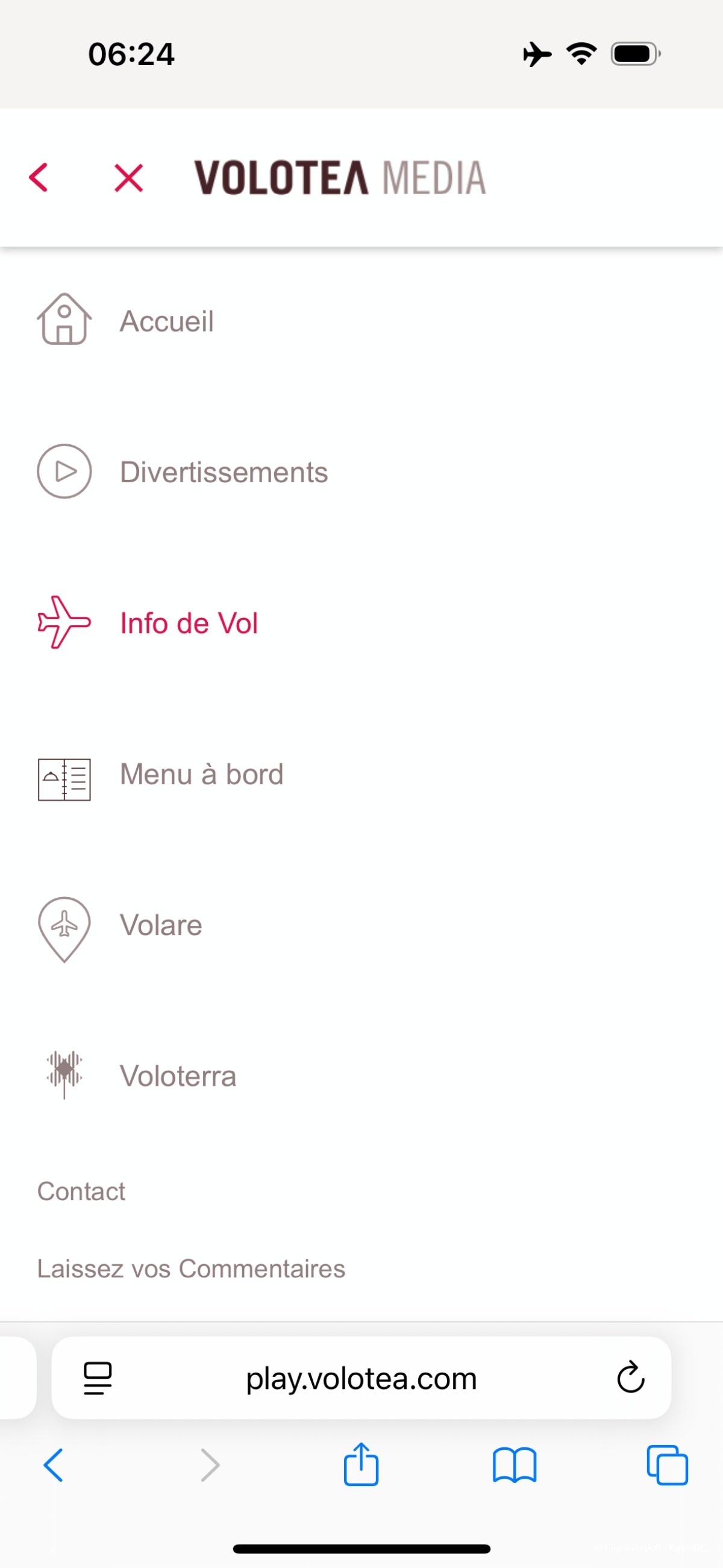 The IFE portal can be found by typing play.volotea.com in the browser, or through the menu QR on the seat back and then navigating to the entertainment main page.