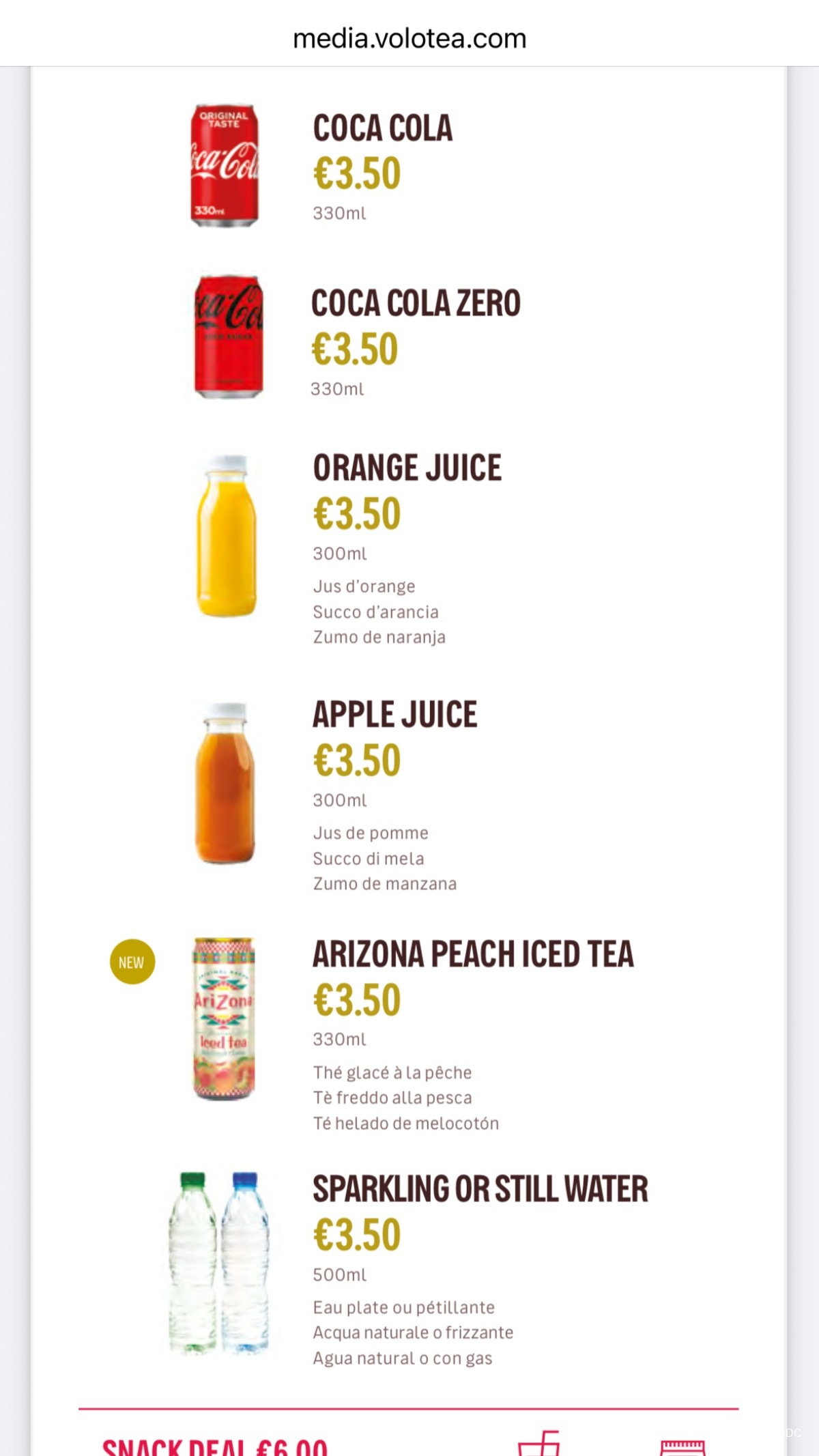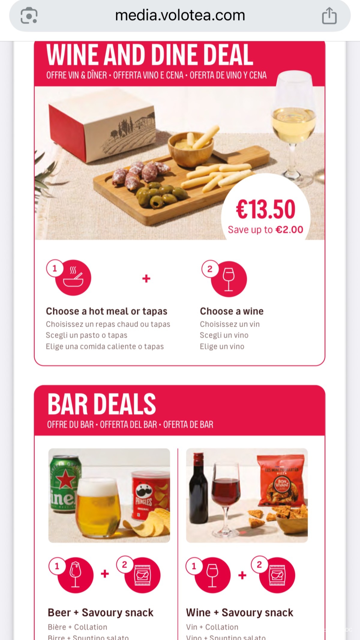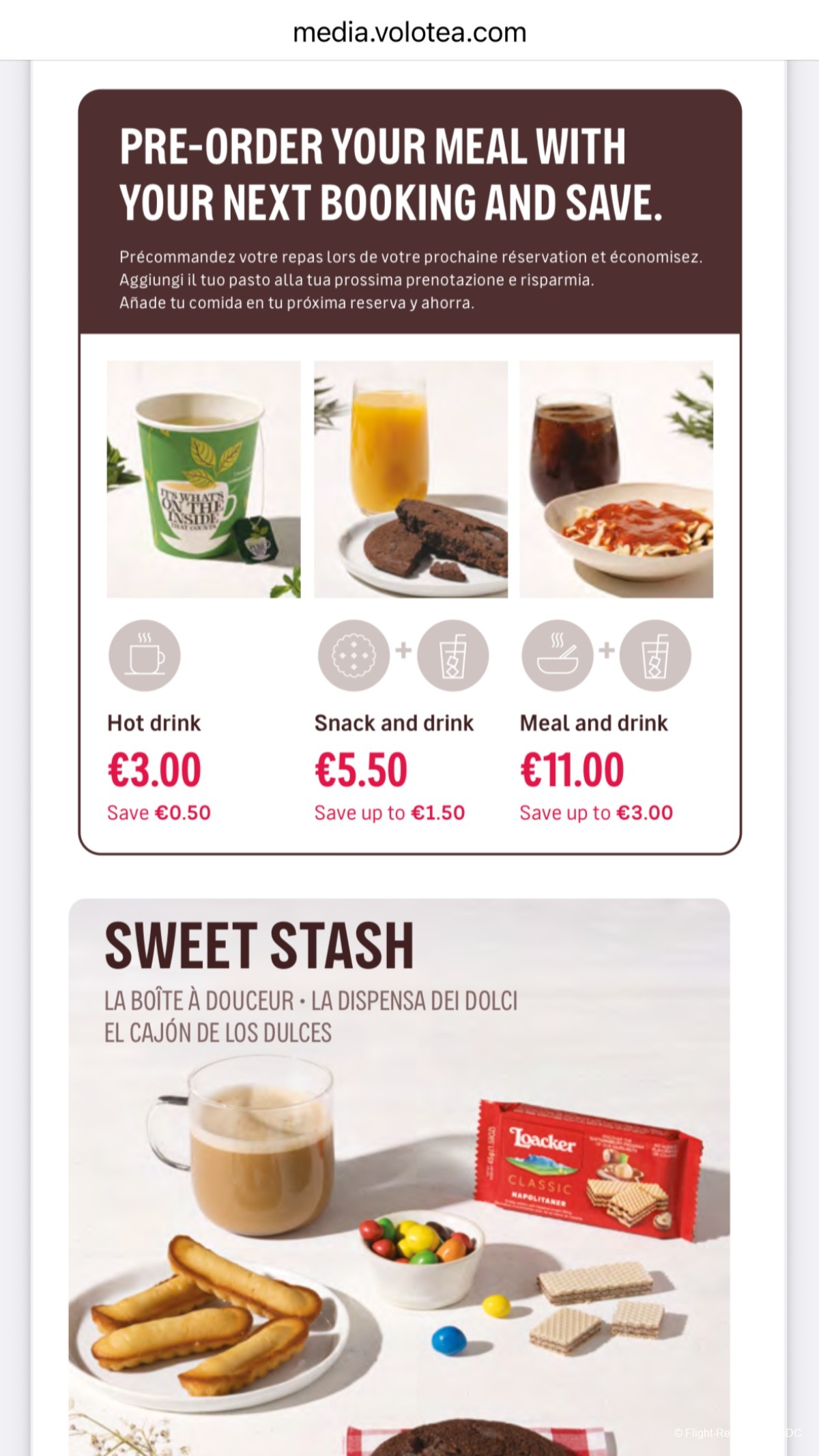 Here's a look at the buy-on-board menu. While I find the food prices decent, drink prices are a bit steep, especially for alcoholic beverages. Note that you can pre-ordering combo deals to save a few Euros.