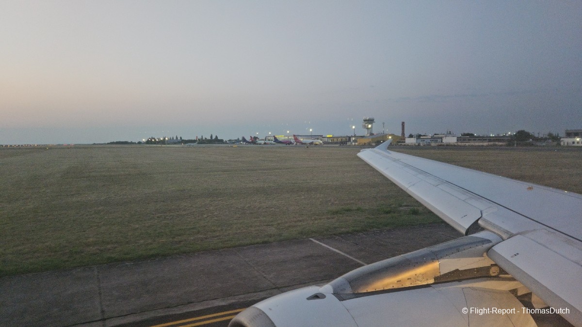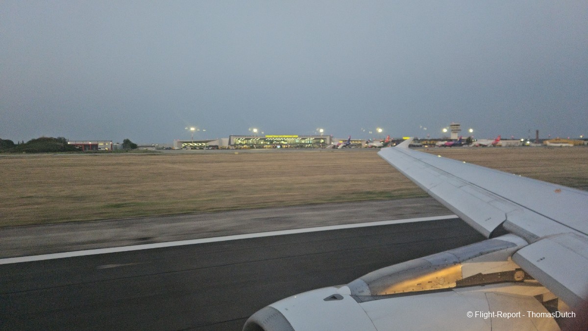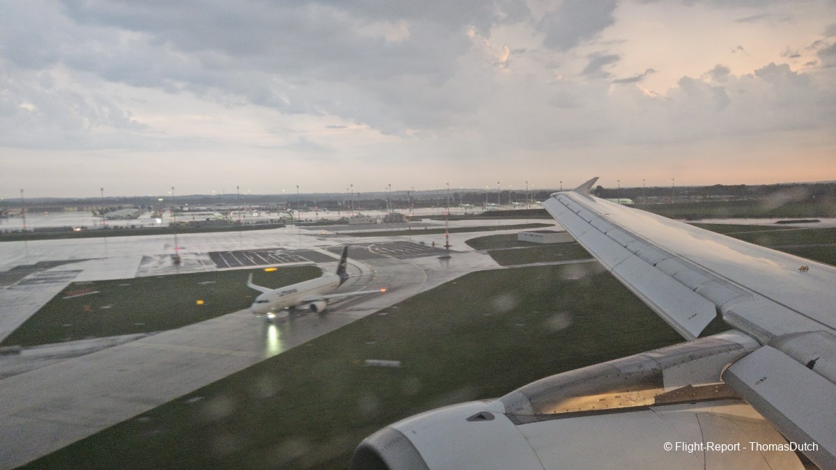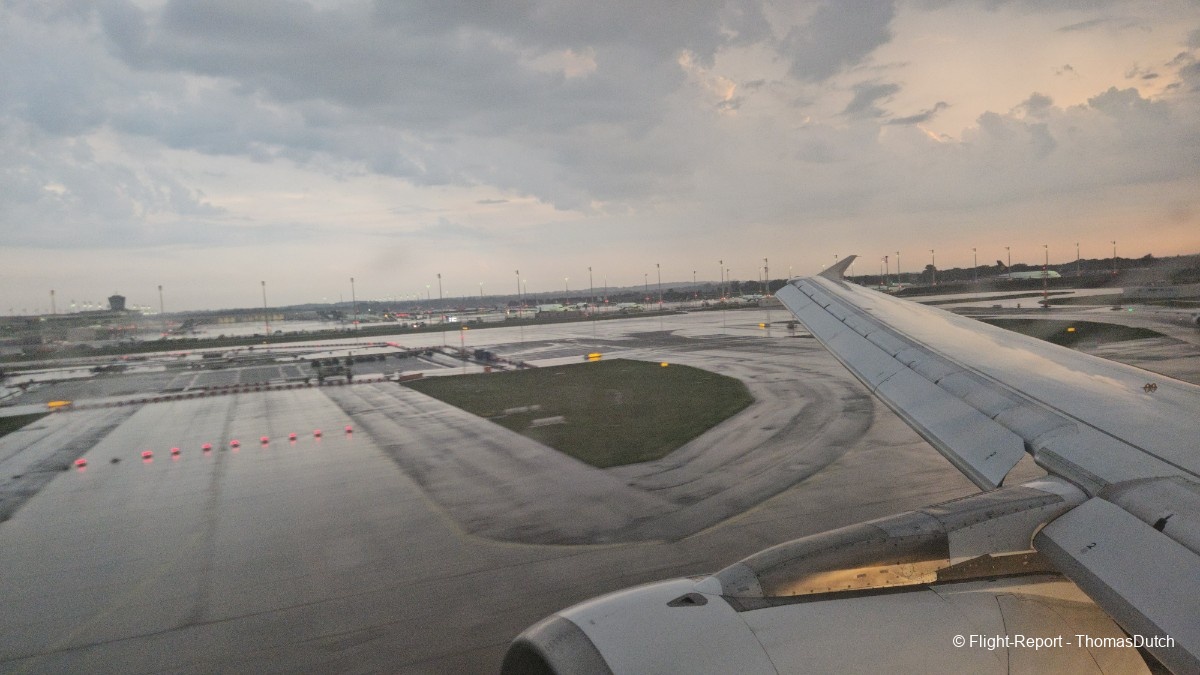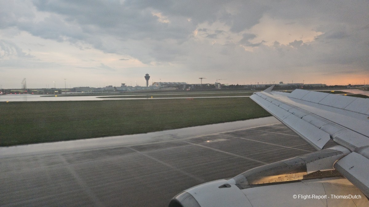 By now we were into approach to Runway 26L with heavy rain and thunder in the vicinity of the airport, yet the airport itself was clear of any weather by the time we touched down about seven minutes ahead of our schedule.