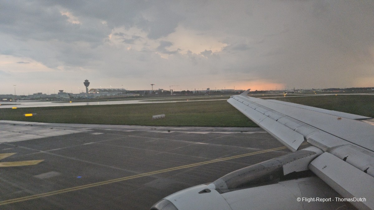 Pushback was eventually engaged about 14 minutes past our scheduled departure time despite us being fully ready well before our scheduled departure time, though we were given a slot by Munich due to bad weather and thunderstorms.