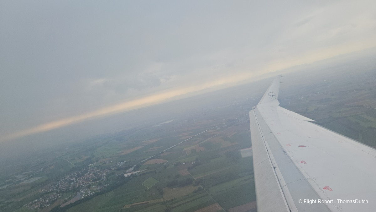 About twenty minutes into the flight, the flight attendants came by to hand out our complimentary bottle of water. While this particular service has been with Lufthansa on regional routes for years now, the drastic change to years ago is that even the bottle of waters have been drastically reduced to 0.3 ml bottles as they used to be 0.5 ml ones in the beginning/introduction of the Buy-on-Board service with Lufthansa.