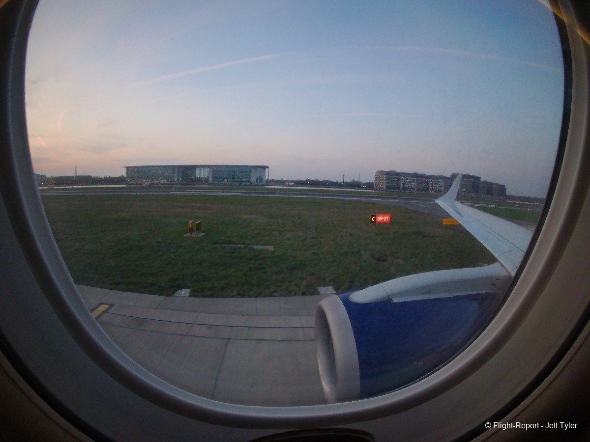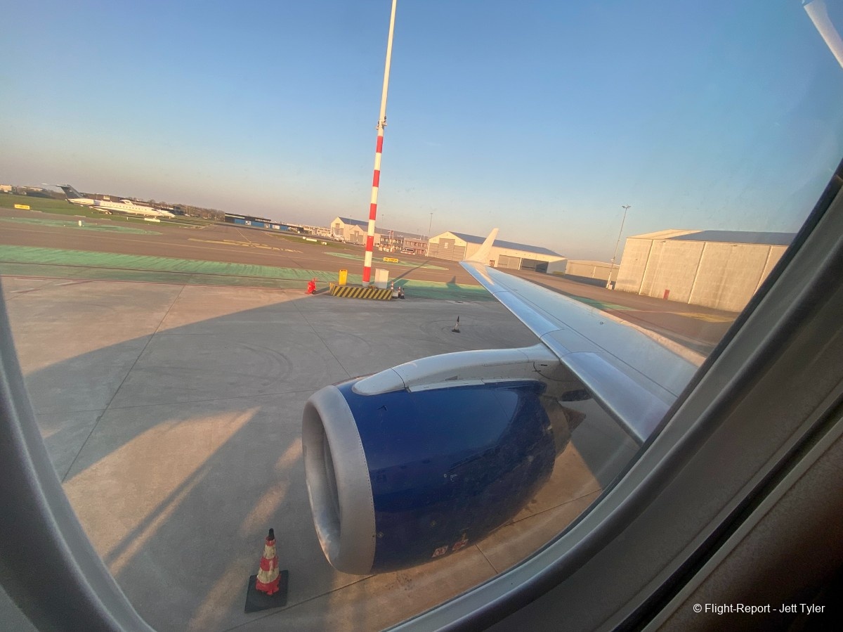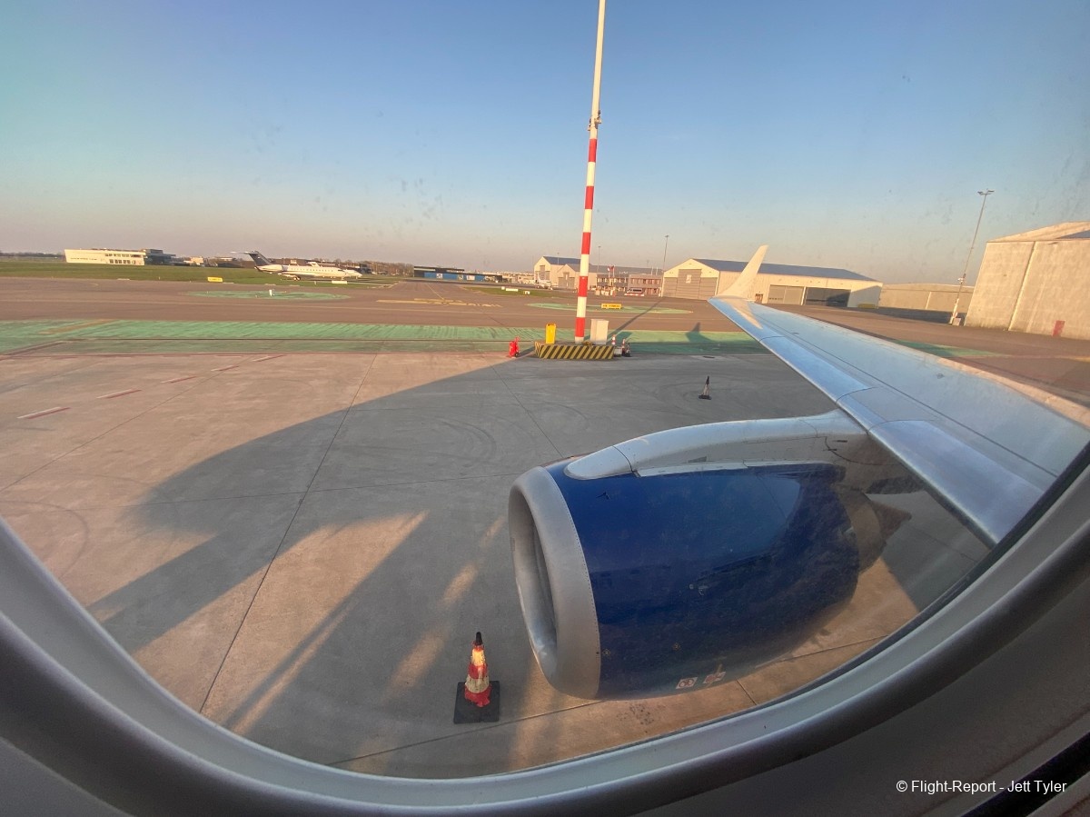 We began our taxi out a few minutes late, but we would easily make that up on our short flight to London. Rotterdam still wasn't that busy as all the Boeing 737-800s had left ahead of us. My seat for this flight was Seat 7D, a window seat right by the engine!