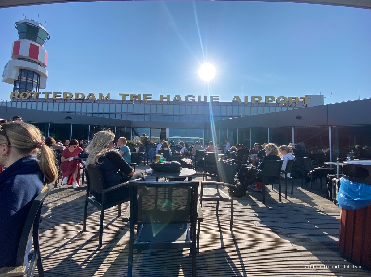 Likewise with Amsterdam Schiphol, there is a small Panorama Terrace at Rotterdam the Hague Airport but unlike the Amsterdam Terrace, this one is a small seating area behind a glass panel, but its great for overlooking the airliners at Rotterdam- mostly Boeing 737s. There is an airside & landside area for the Terrace, and the airside part is a great on a good day like today where you can plane spot and enjoy a nice Heineken before you fly!