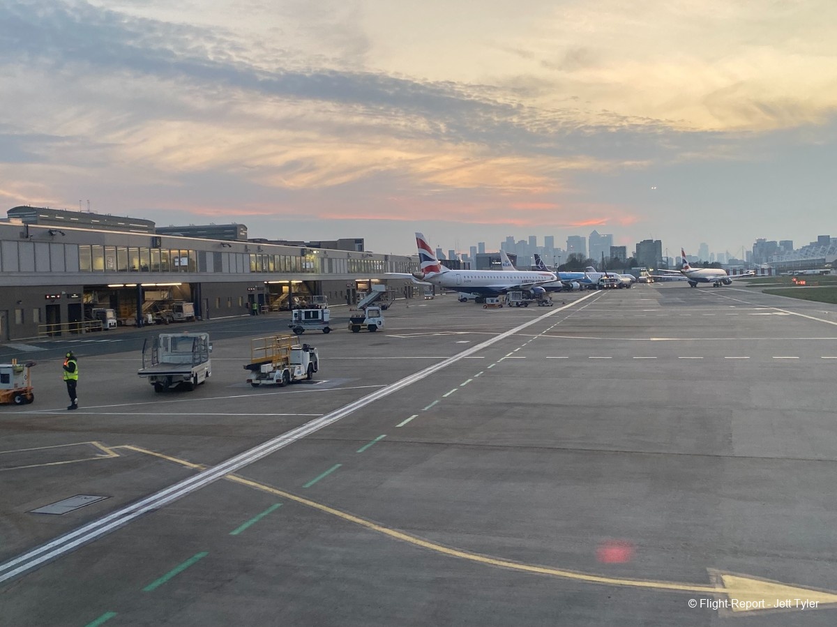 We touched down into London City Airport passing the line-up of Embraer ERJ aircraft on the apron in front of the Terminal with airlines like KLM Cityhopper, LOT Polish Airlines, Helvetic Airways all preparing to head back to base for the evening, a single ATR-72 from Aurigny was parked up having just arrived from Guernsey and various BA Cityflyer ERJ aircraft were on stand for the night- ready for those 06:00am-07:30am early departures the following day!