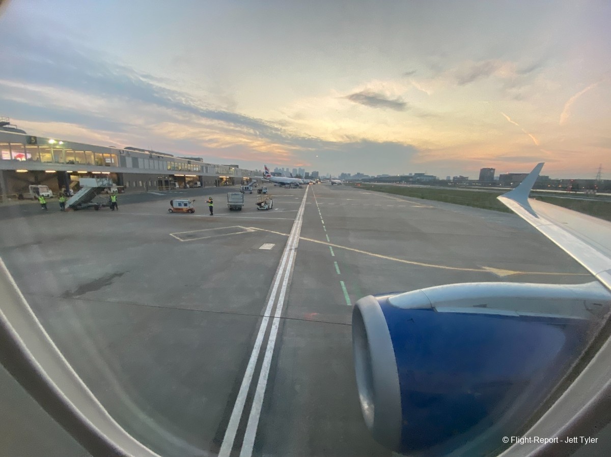The golden sunset and clear skies over Rotterdam offered some nice photos as I boarded the ERJ-190, it appeared this flight was going to be a full or nearly full flight, which happens a lot as Rotterdam gets a lot of business travellers during the week from London City, plus its the only daily link to London as British Airways pulled their London Heathrow-Rotterdam services a while ago.