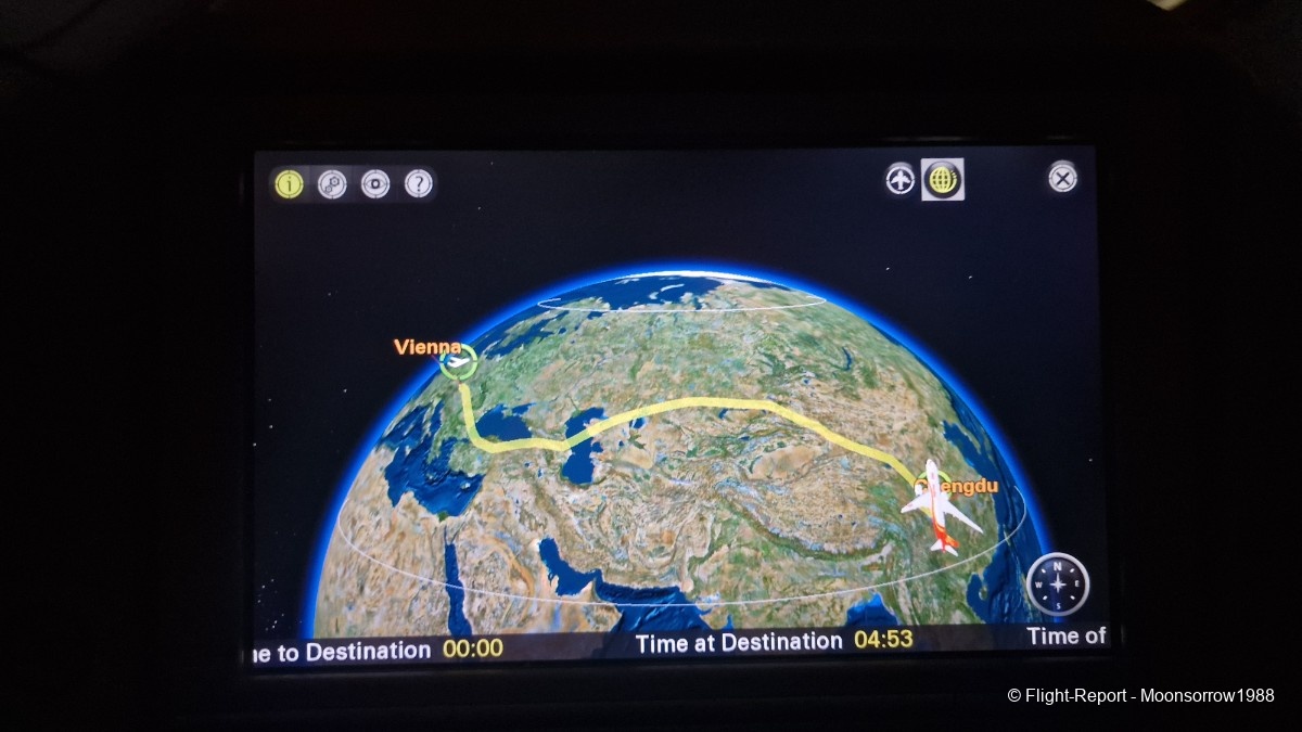The flight from Vienna to Chengdu considerably shortens the trip back to Asia, despite the detour around the Black Sea, this for obvious reasons).