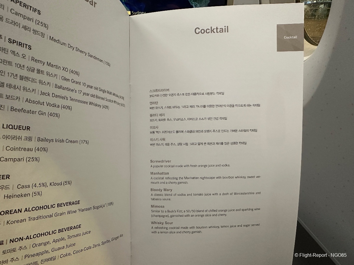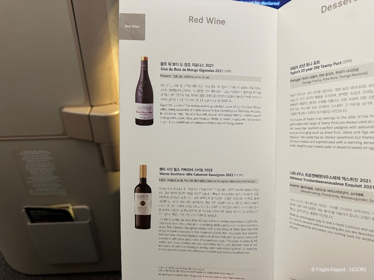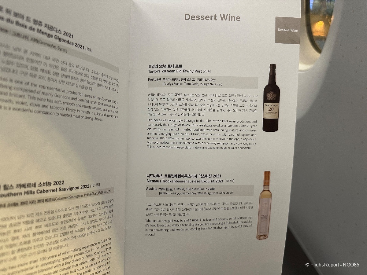 The drinks menu is good and on par with KE, but a step below the Taipei-based carriers.