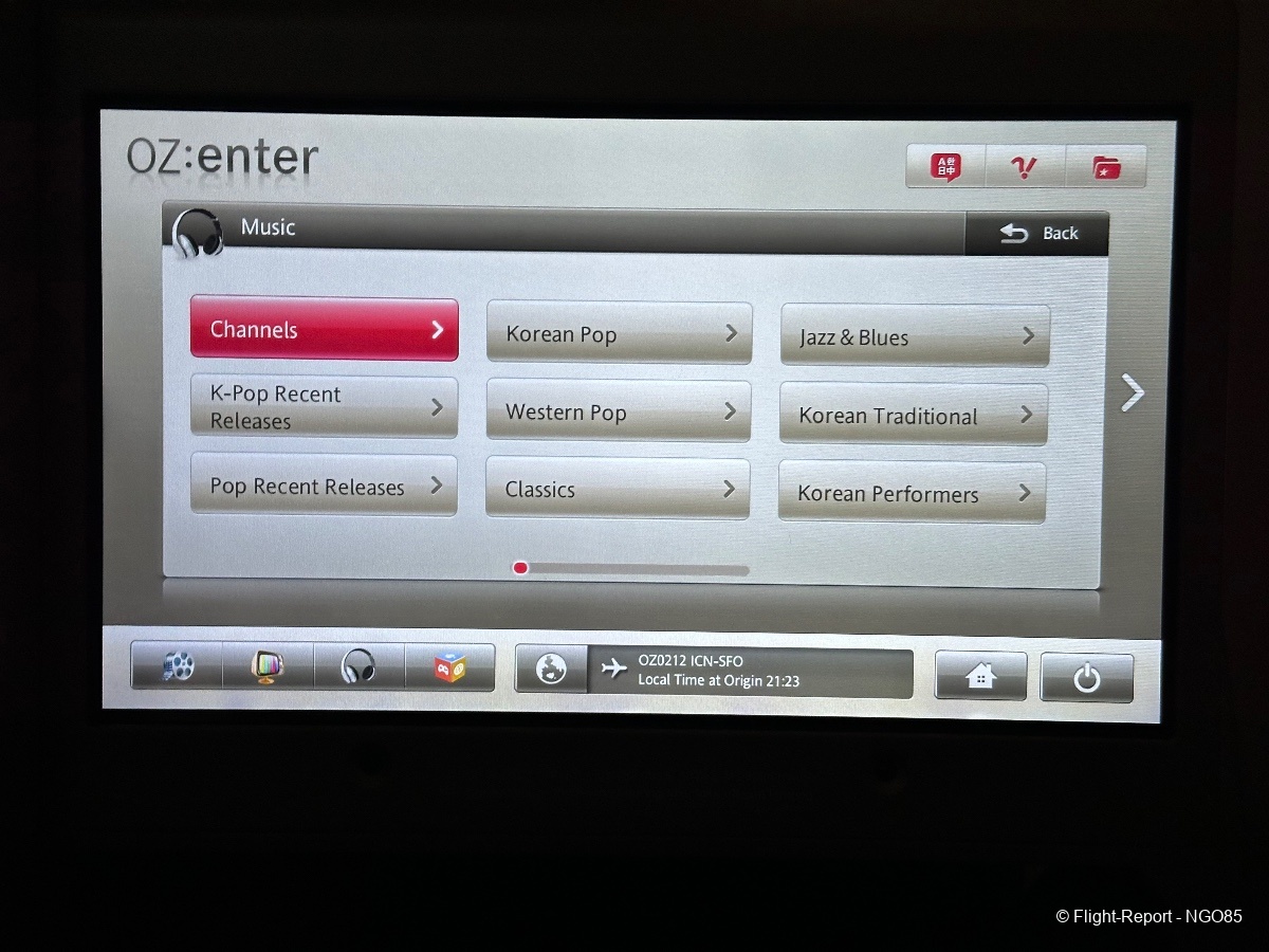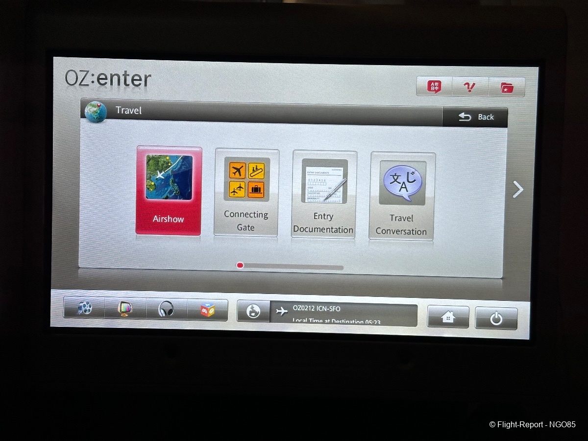 Water bottle, noise cancelling headphones, slippers, and amenity kit were pre-placed here. The Aigner amenity kits on flights ex-ICN are a nicer water-repellent material and the zipper pouch is quite practical for re-use. The contents are the same as in this flight.