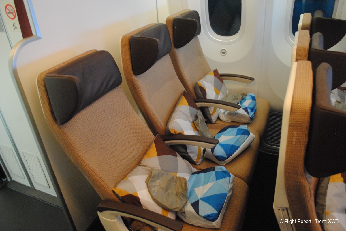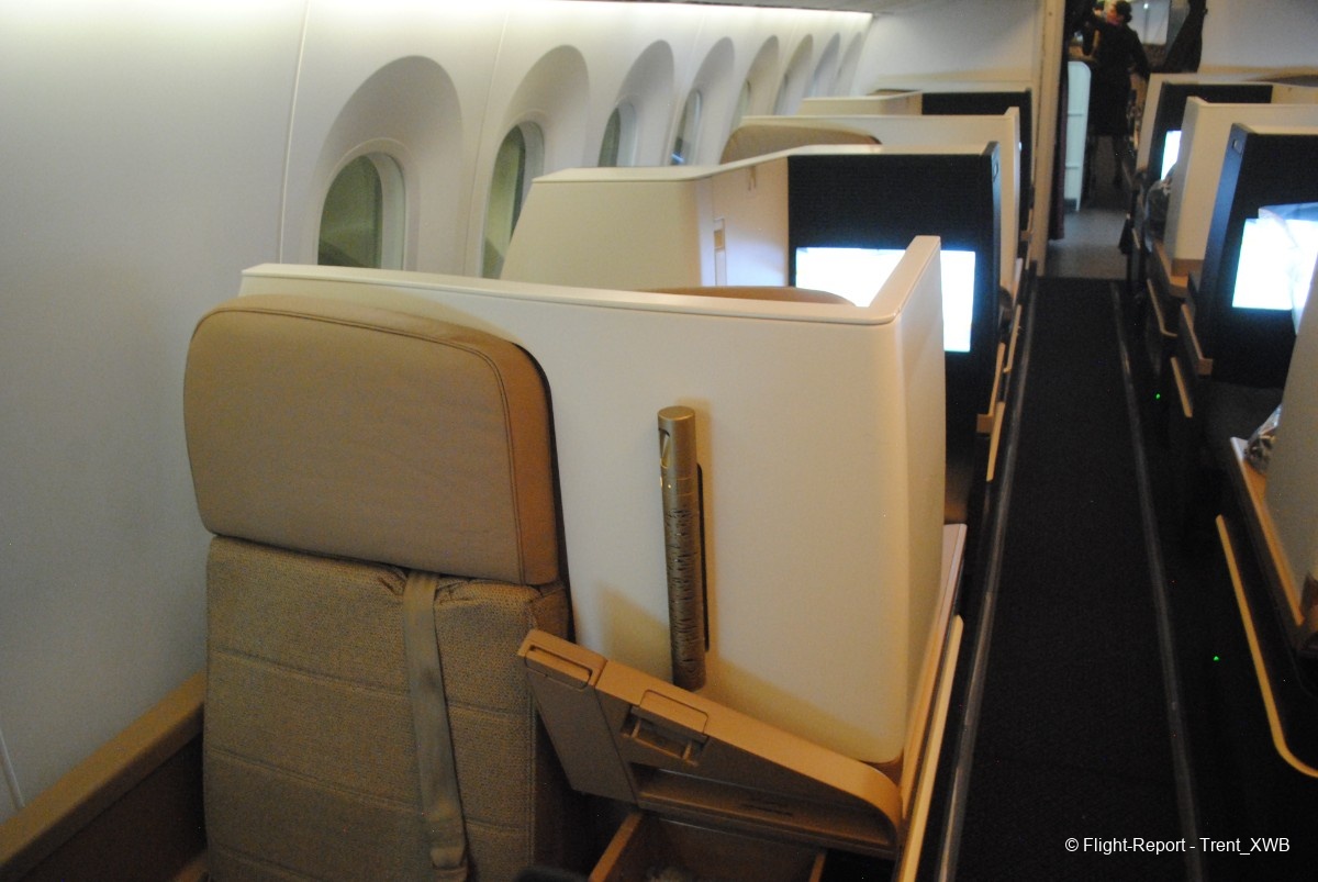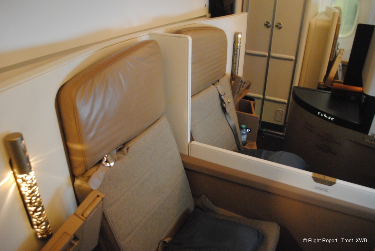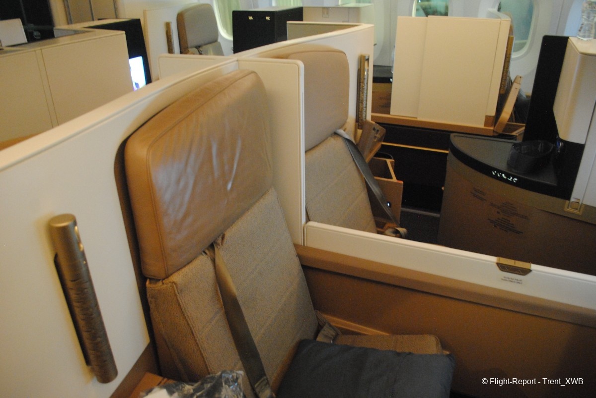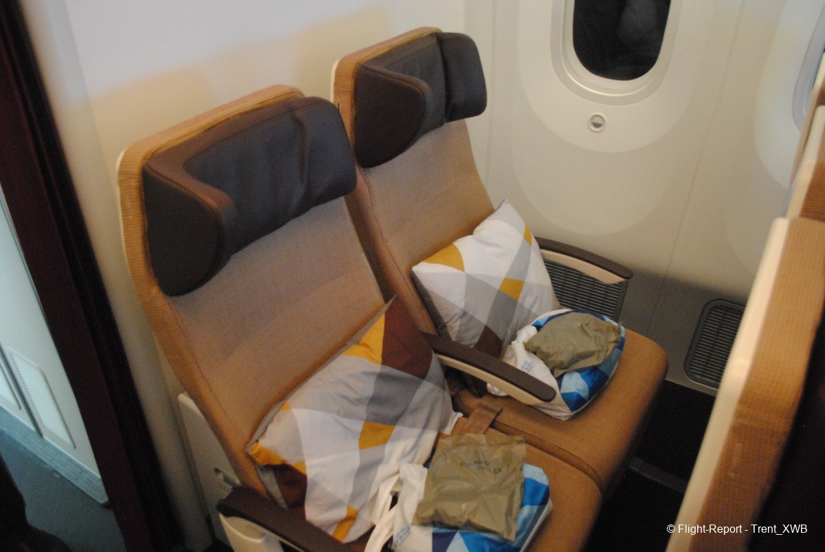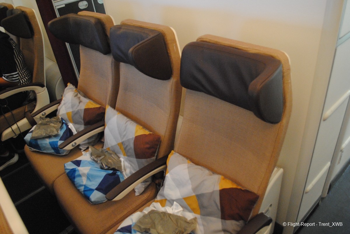 I was not expecting that the strich crew will allow me to visit the business cabin, but they did (thanks!), telling not to take photos of the seats with after-the-flight mess. So, this is how their Business Suites (not really suites) with forward- and rear-facing seats look like:
