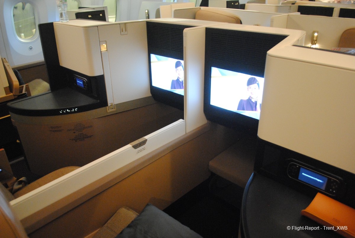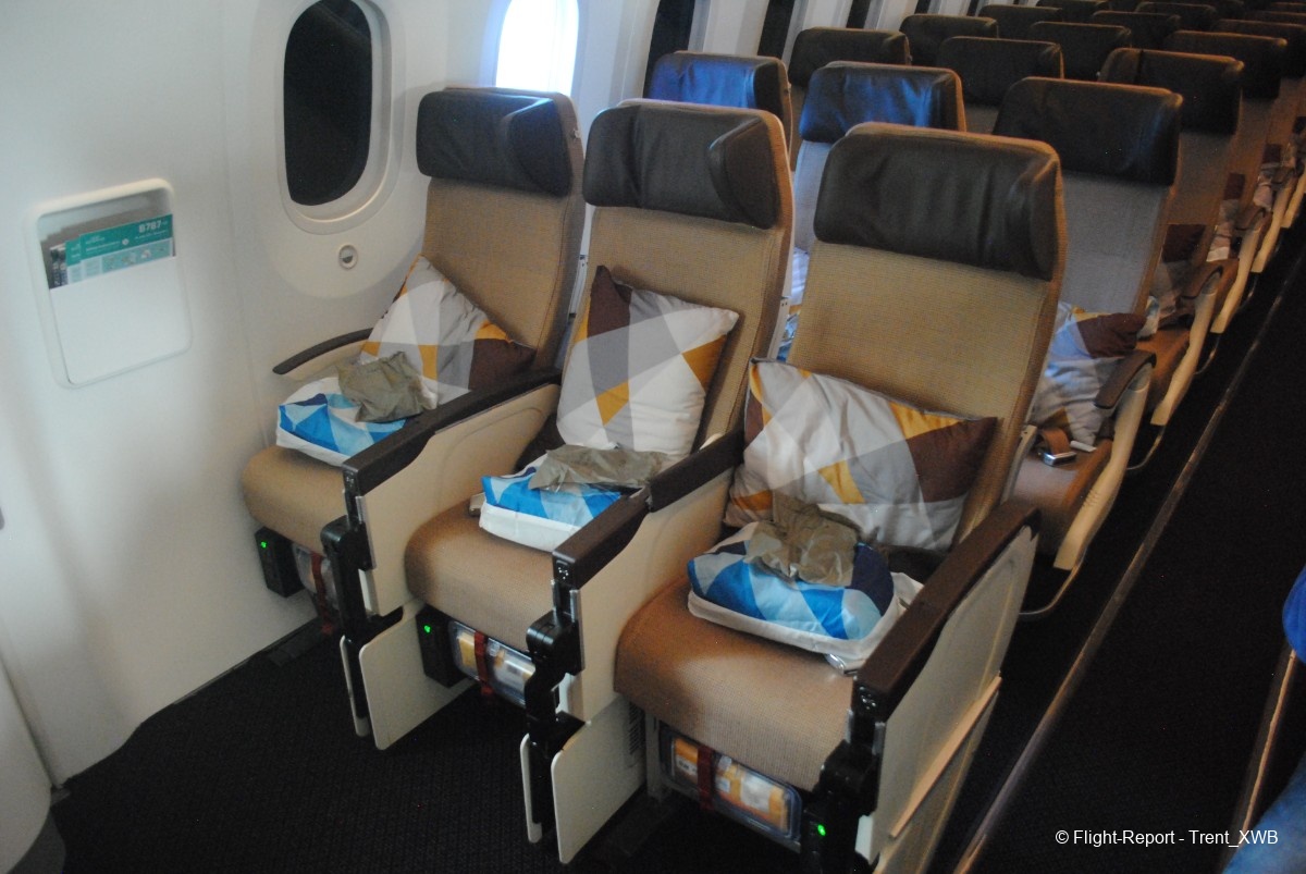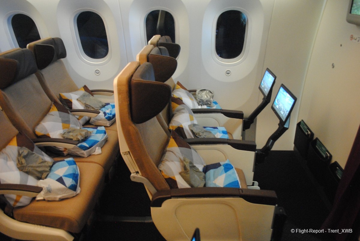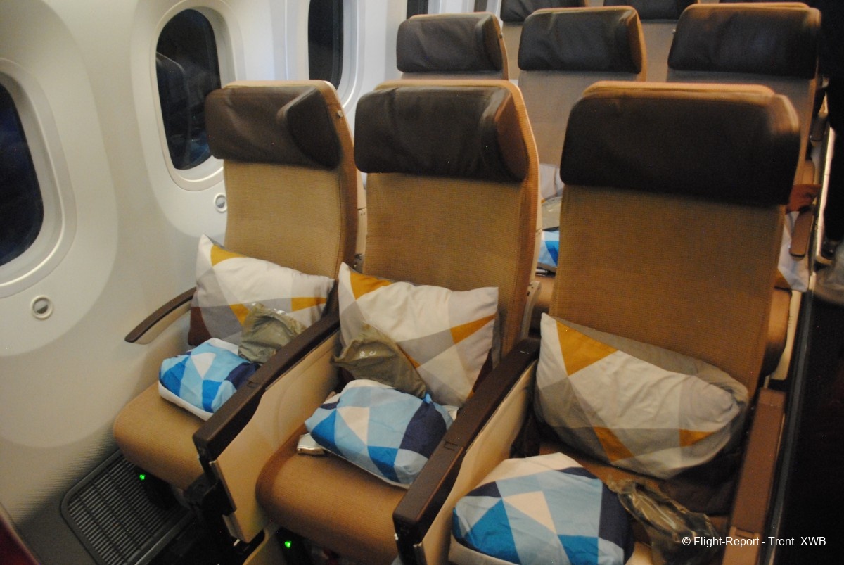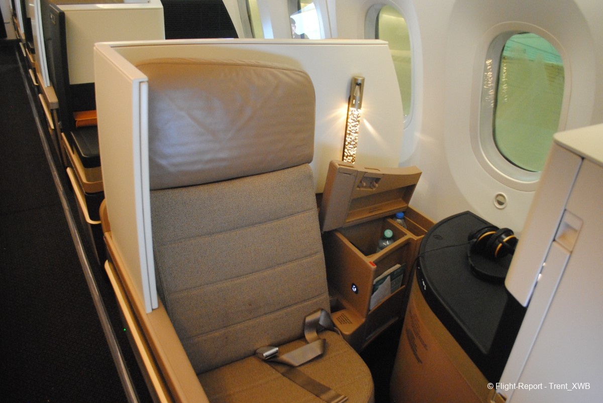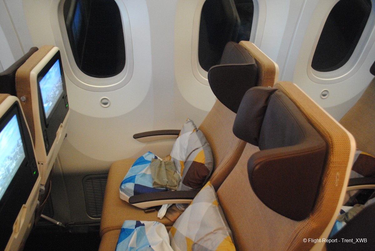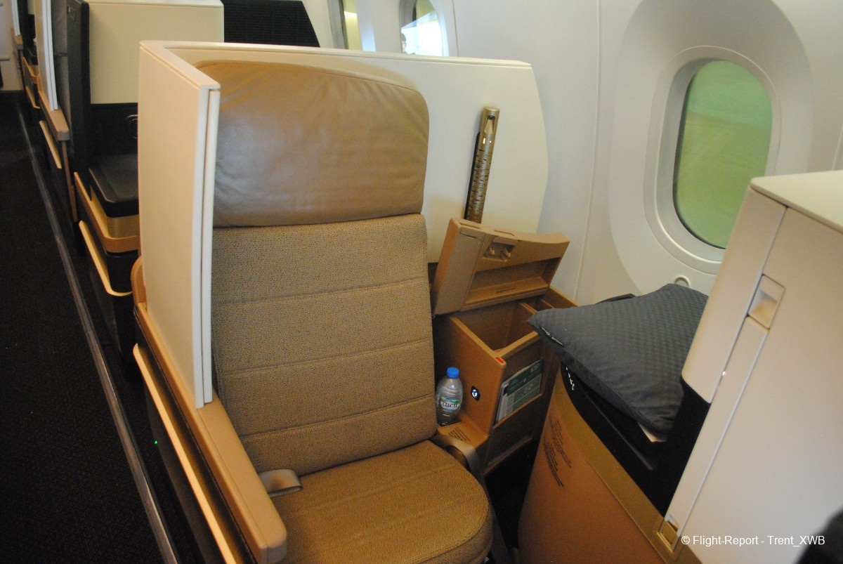 I was not expecting that the strich crew will allow me to visit the business cabin, but they did (thanks!), telling not to take photos of the seats with after-the-flight mess. So, this is how their Business Suites (not really suites) with forward- and rear-facing seats look like: