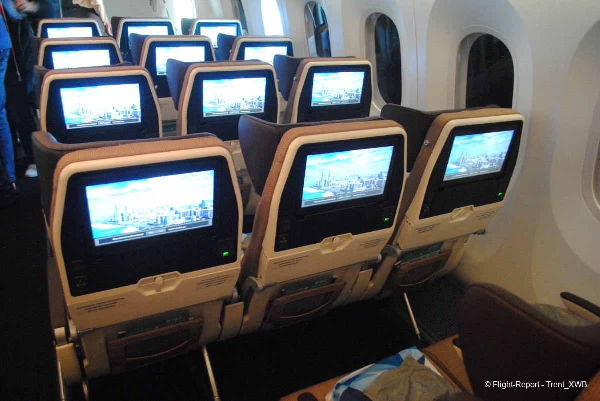 This flight was the first leg of my trip to Japan (VIE-AUH-ICN-KIX, the last leg being operated by KE A333). I was enthusiastic to eventually fly B78X (I had to fly EVA's B78X in November 2023 on TPE to ICN, but due to high demand aircraft was changed to B77W, which was a nice experience anyway), but the flight was not pleasant due to strict (and almost hostile) crew, which were prohibiting taking photos onboard (almost like the worst crews in the world - Iberia's ones), but I managed to take decent shots of the cabins.