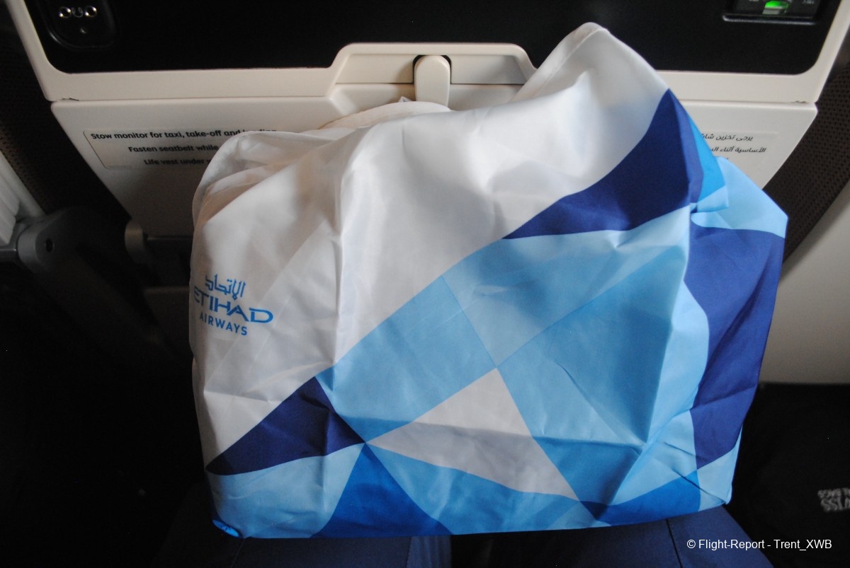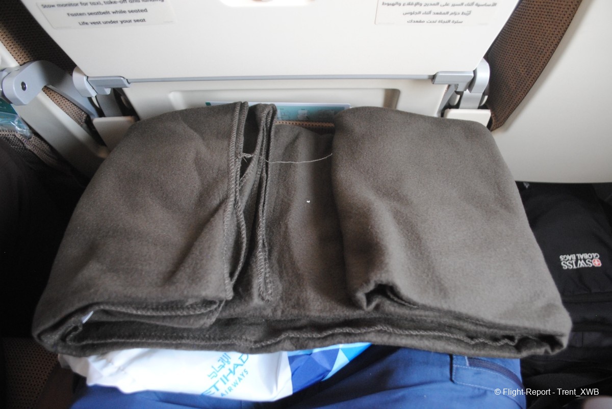 The economy class consists of 295 seats in 3-3-3 layout, distributed between two large cabins: the front one between 2L/R and 3L/R doors and the rear one between 3L/R and 4L/R doors. The crew dimmed the windows, the cabin lighting was weak (which later discovered to be typical for EY flights), and in semi-darkness in was hard to take good photos, but I tried to do my best…