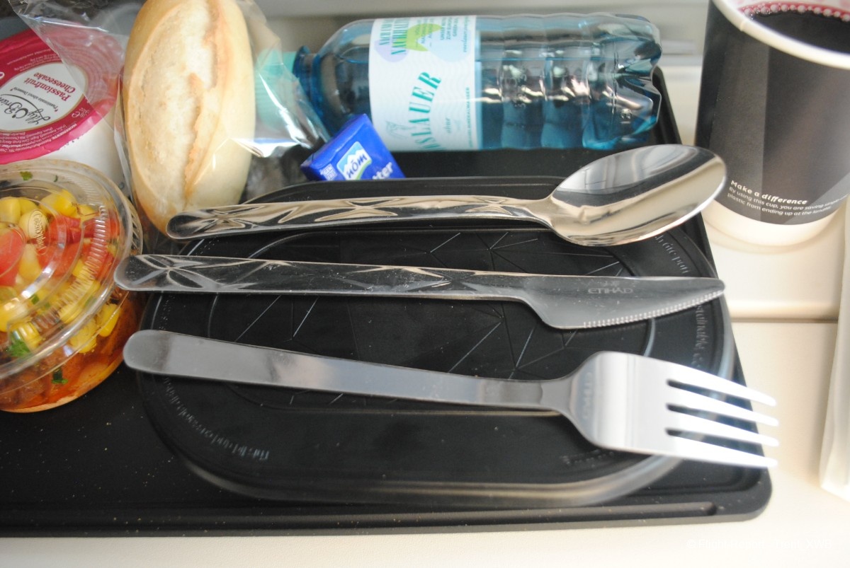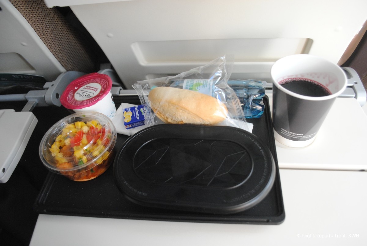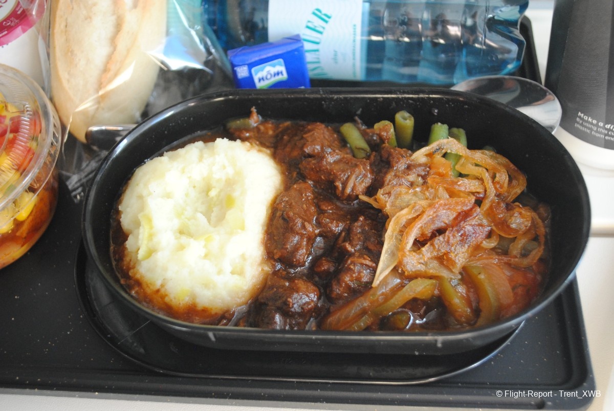 We took off from VIE on time, and after an hour the meal is served. It consisted of beef with puree, sause and vegs, salad, cheescake, bun, butter and bottle of water. The meal was tasty, but not enough in size for me. The cutlery was metallic.