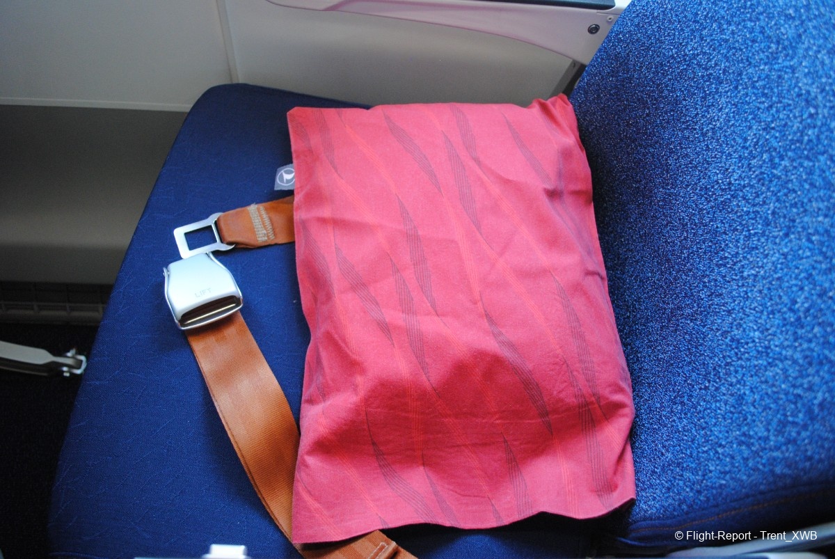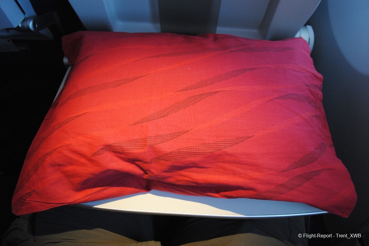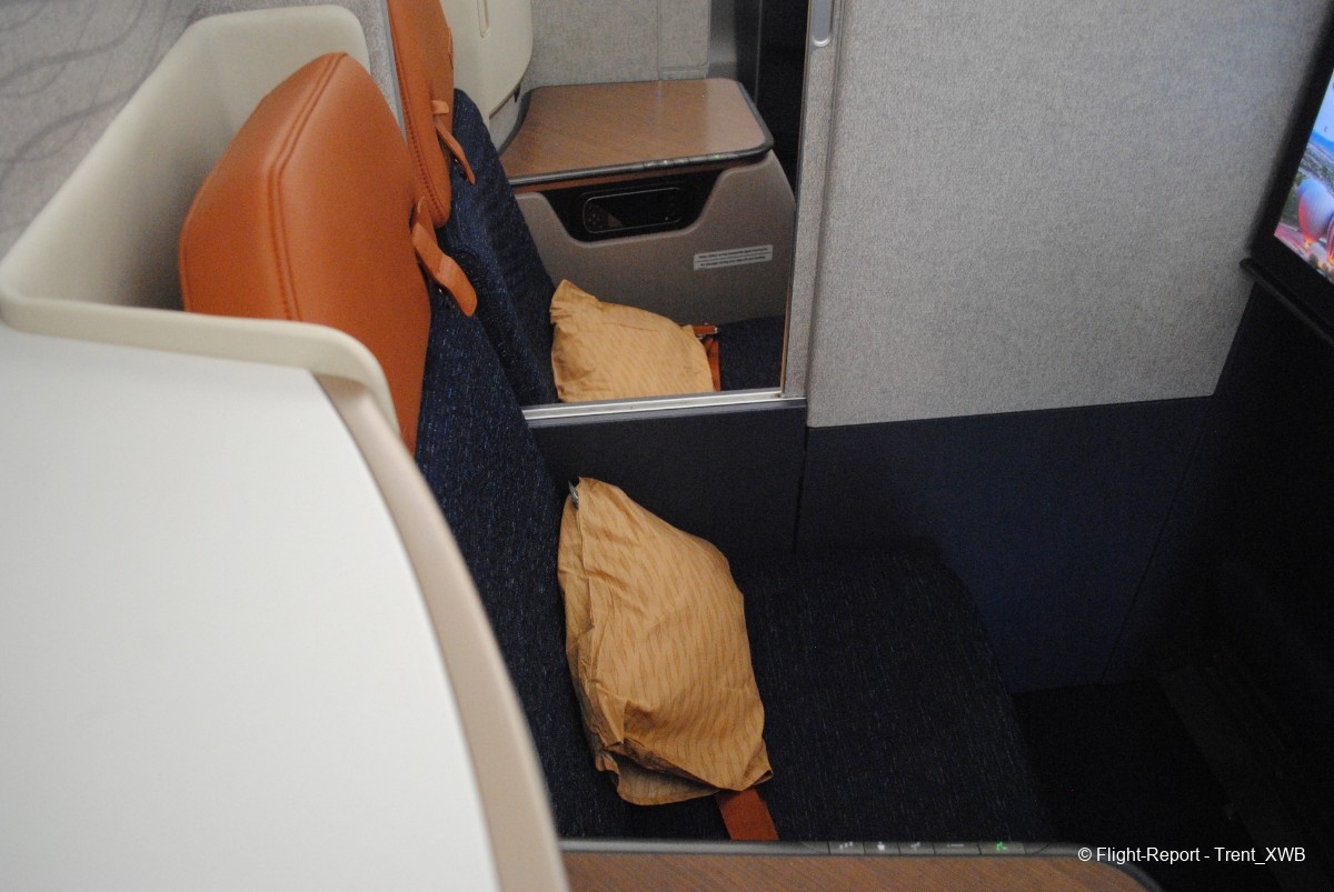 The seat has adjustable headrest, a very modern IFE (Panasonic eX3) with large and crispy screen with USB and USB-C ports, coat hanger, bifold tray table and cup holder, seat pocket, and universal power socket underseat. Waiting on the seat was pillow.