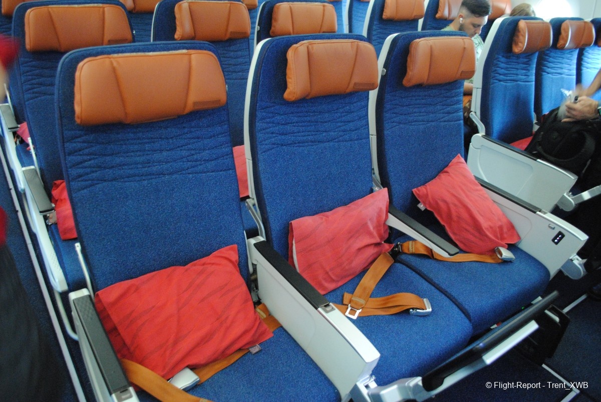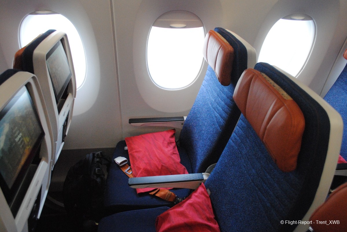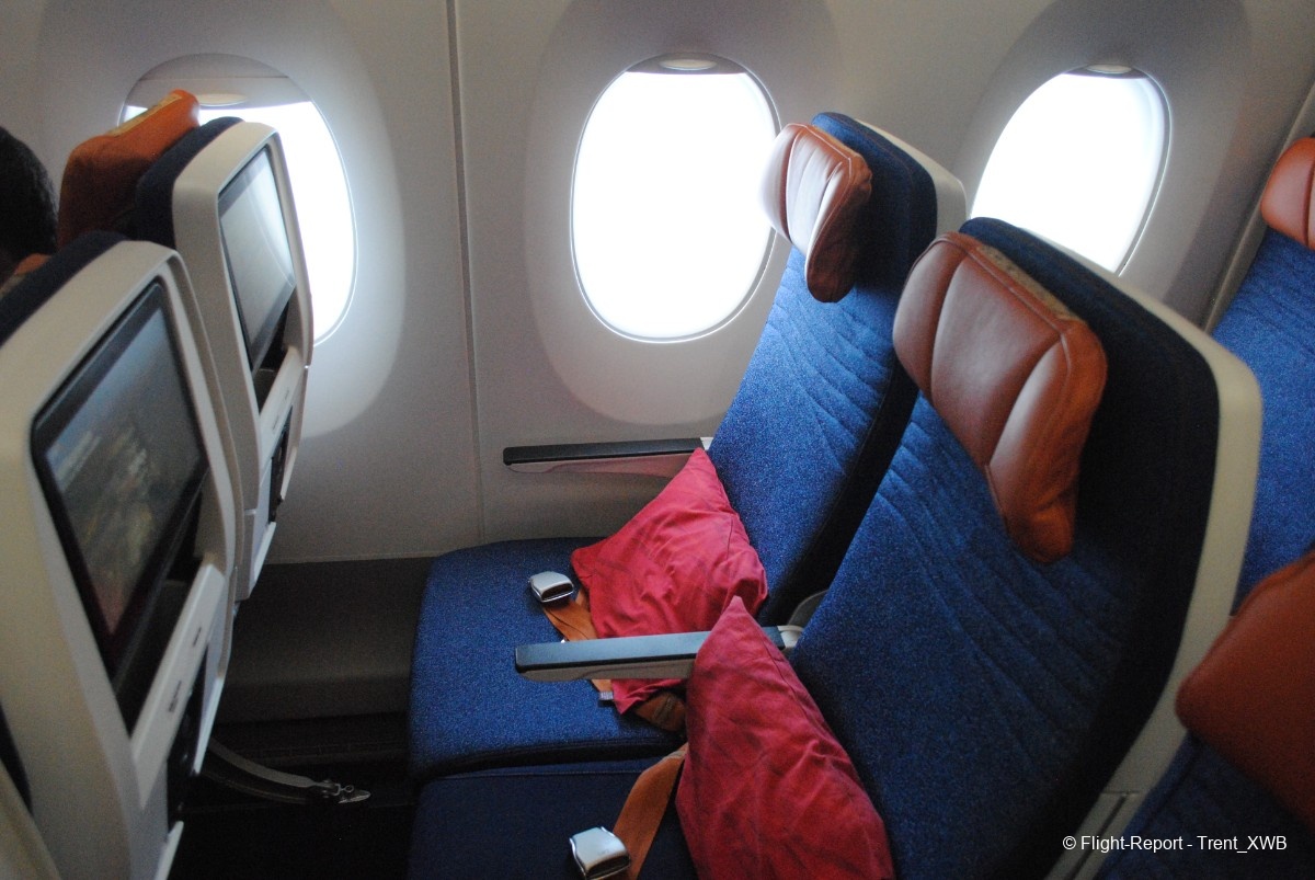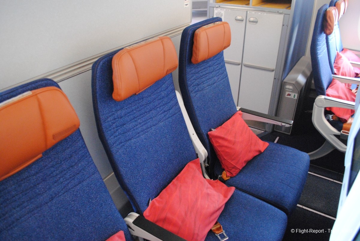 My seat was 29K in the rear cabin. The flight TK784 had an remarkable feature: it used to be almost empty (obviously, the reason for putting a widebody on this flight was good load for the return flight) and there were a lot of empty 3-seater blocks in the cabin. I got 3 seats for myself.