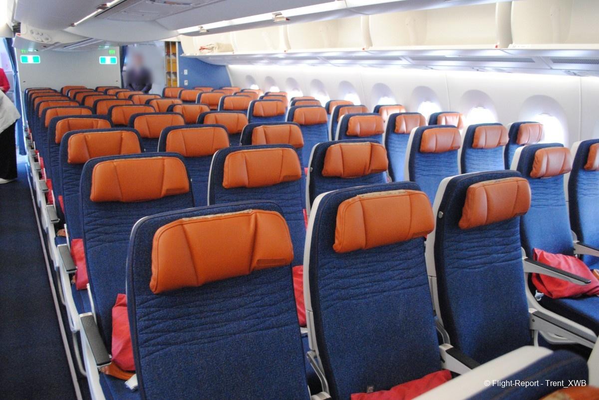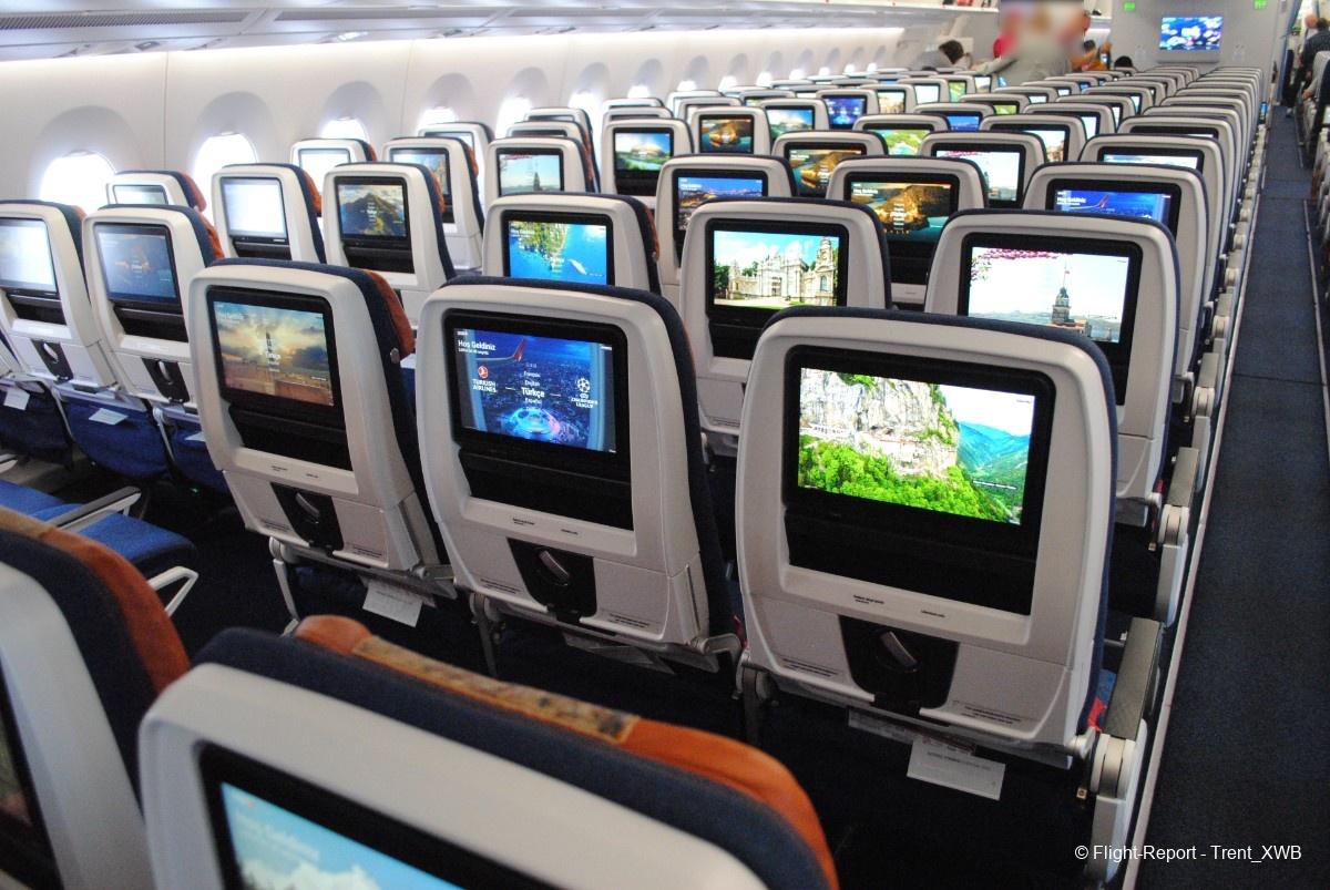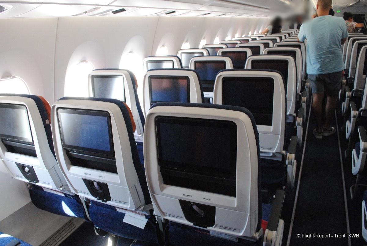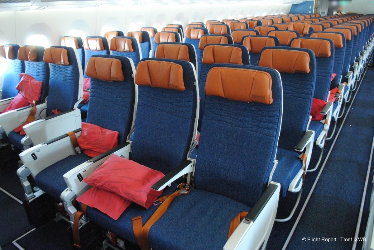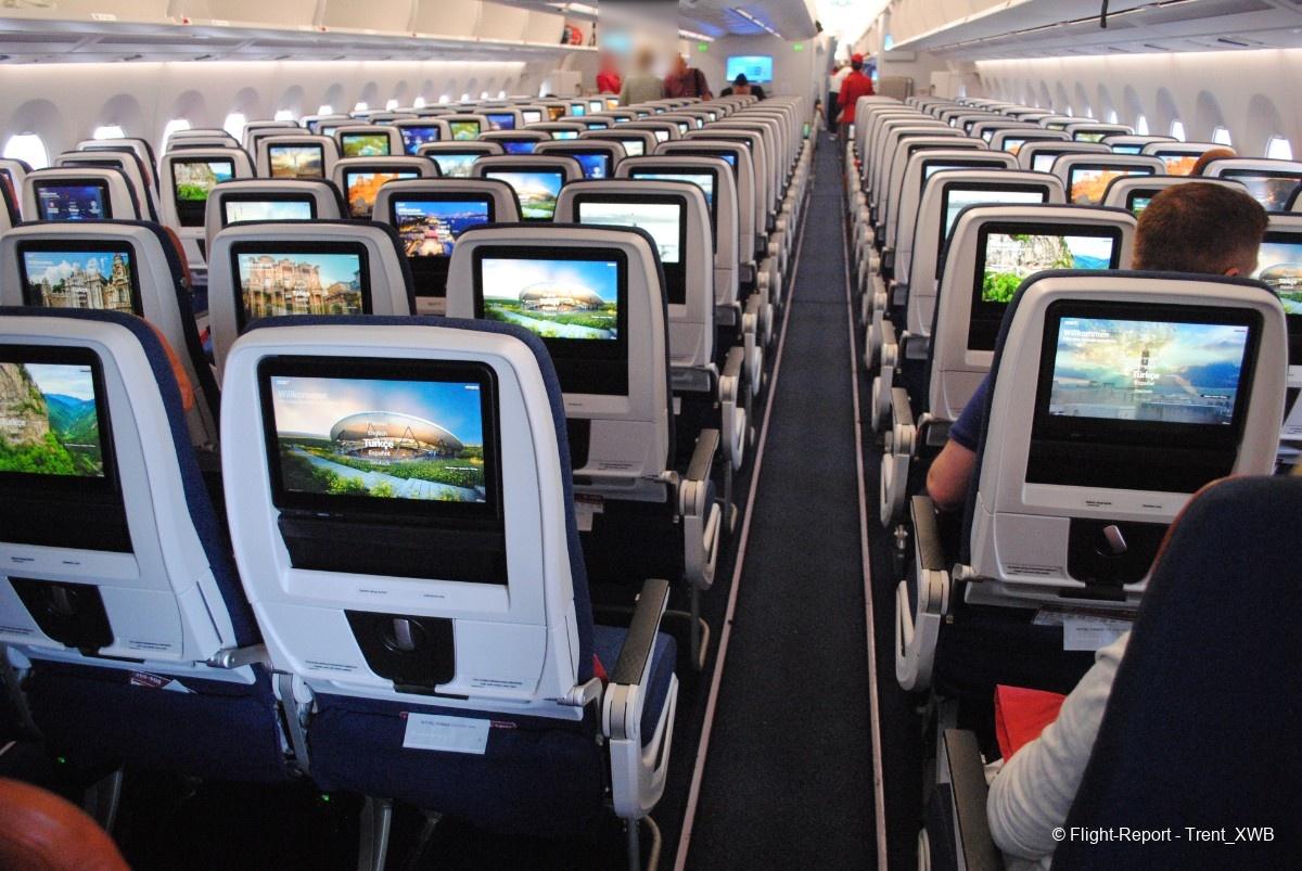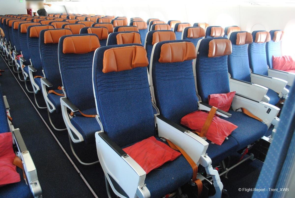 Then follows the economy class, consisting of 264 seats in 3-3-3 layout, distributed between two cabins: the front one between the premium economy and 3L/R doors, and the rear one between 3L/R and 4L/R doors.