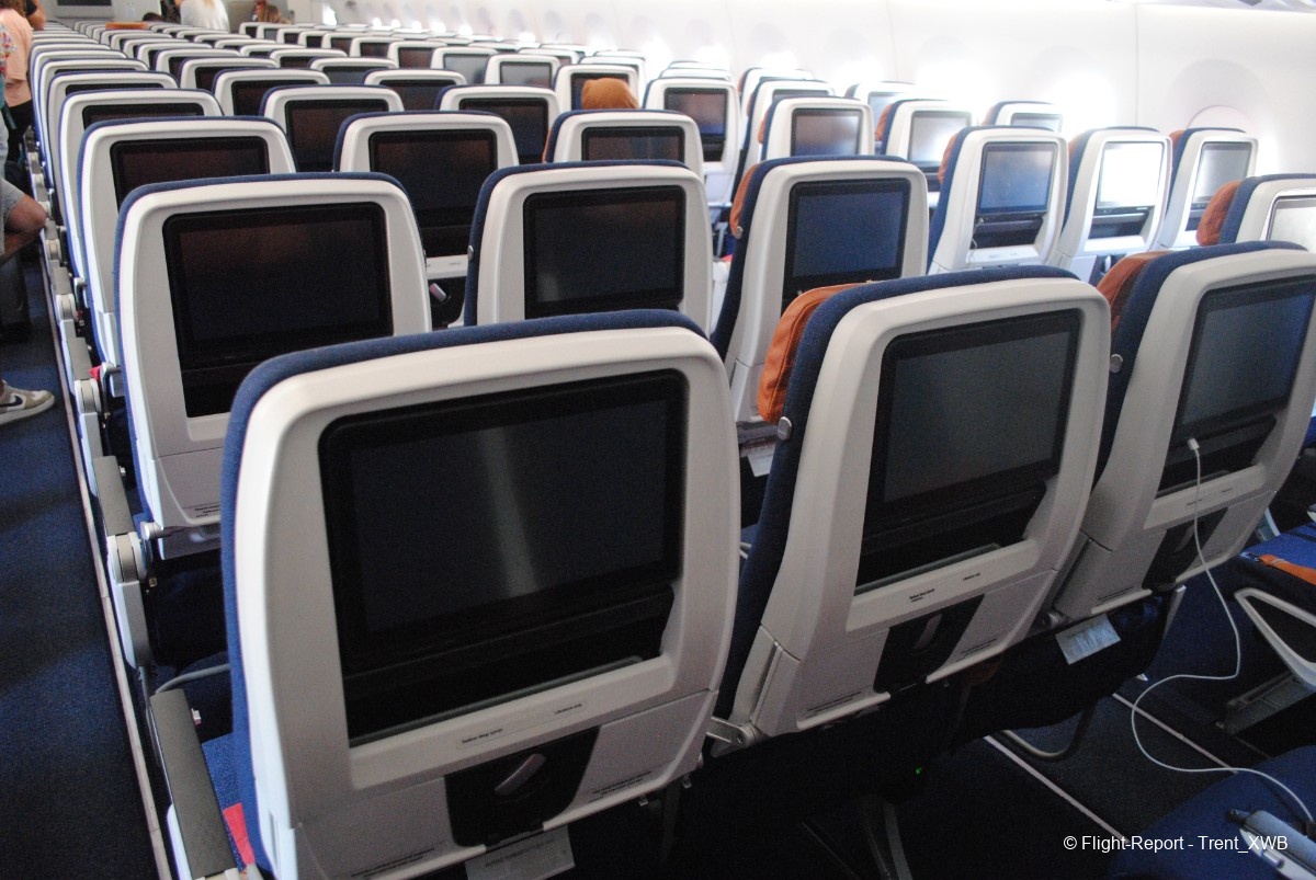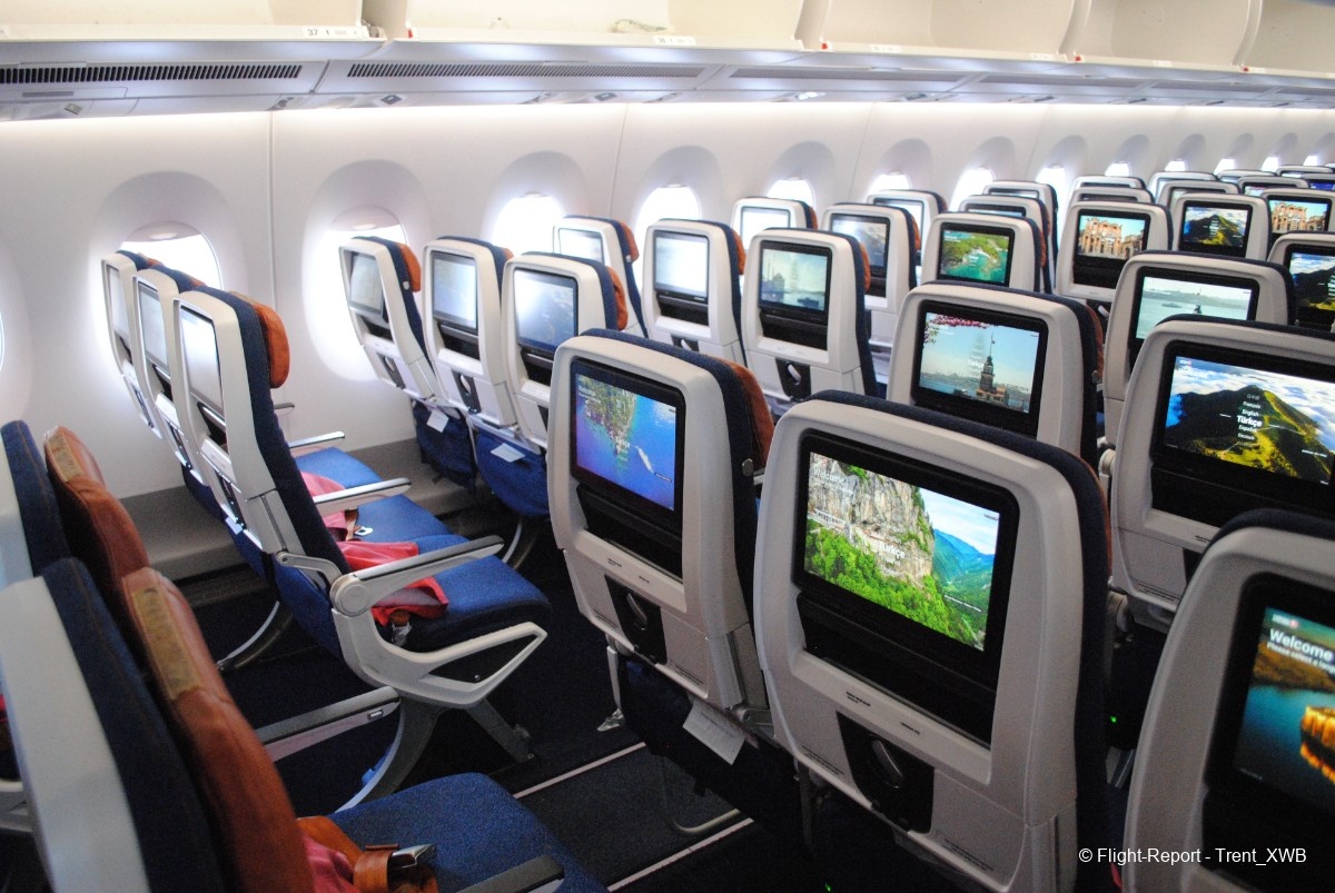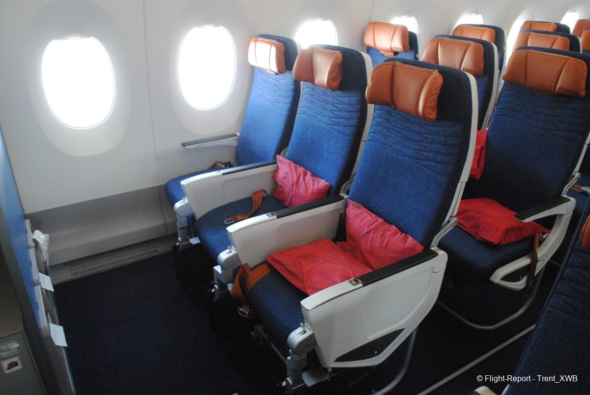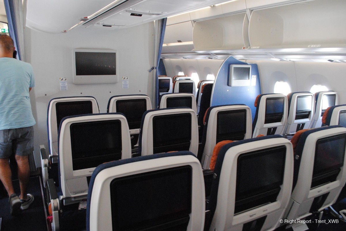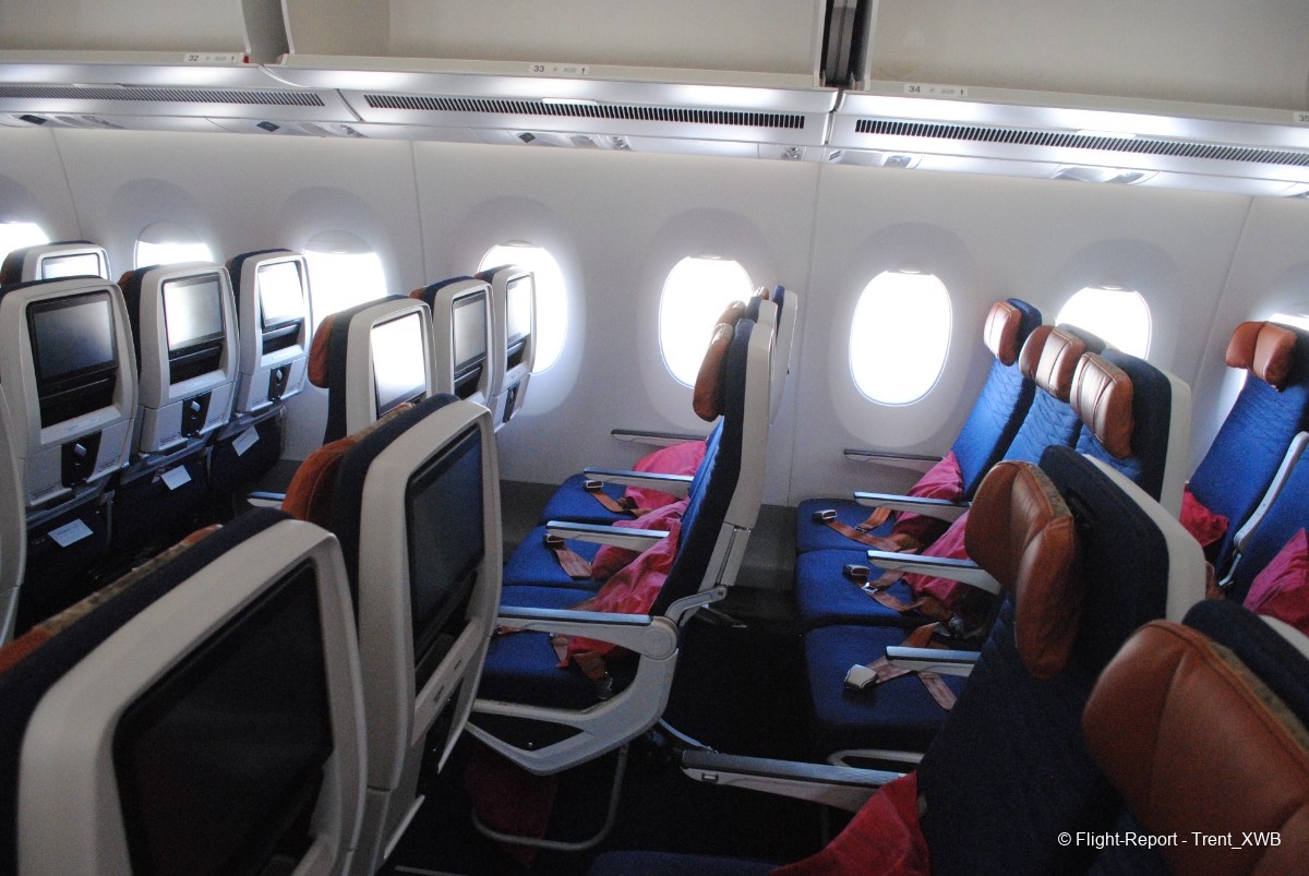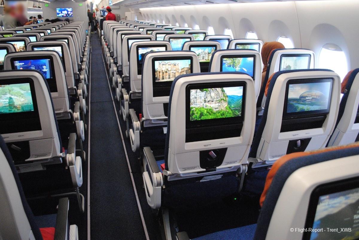 Then follows the economy class, consisting of 264 seats in 3-3-3 layout, distributed between two cabins: the front one between the premium economy and 3L/R doors, and the rear one between 3L/R and 4L/R doors.