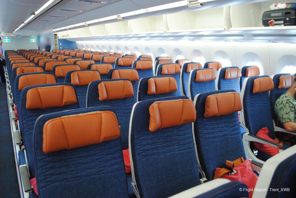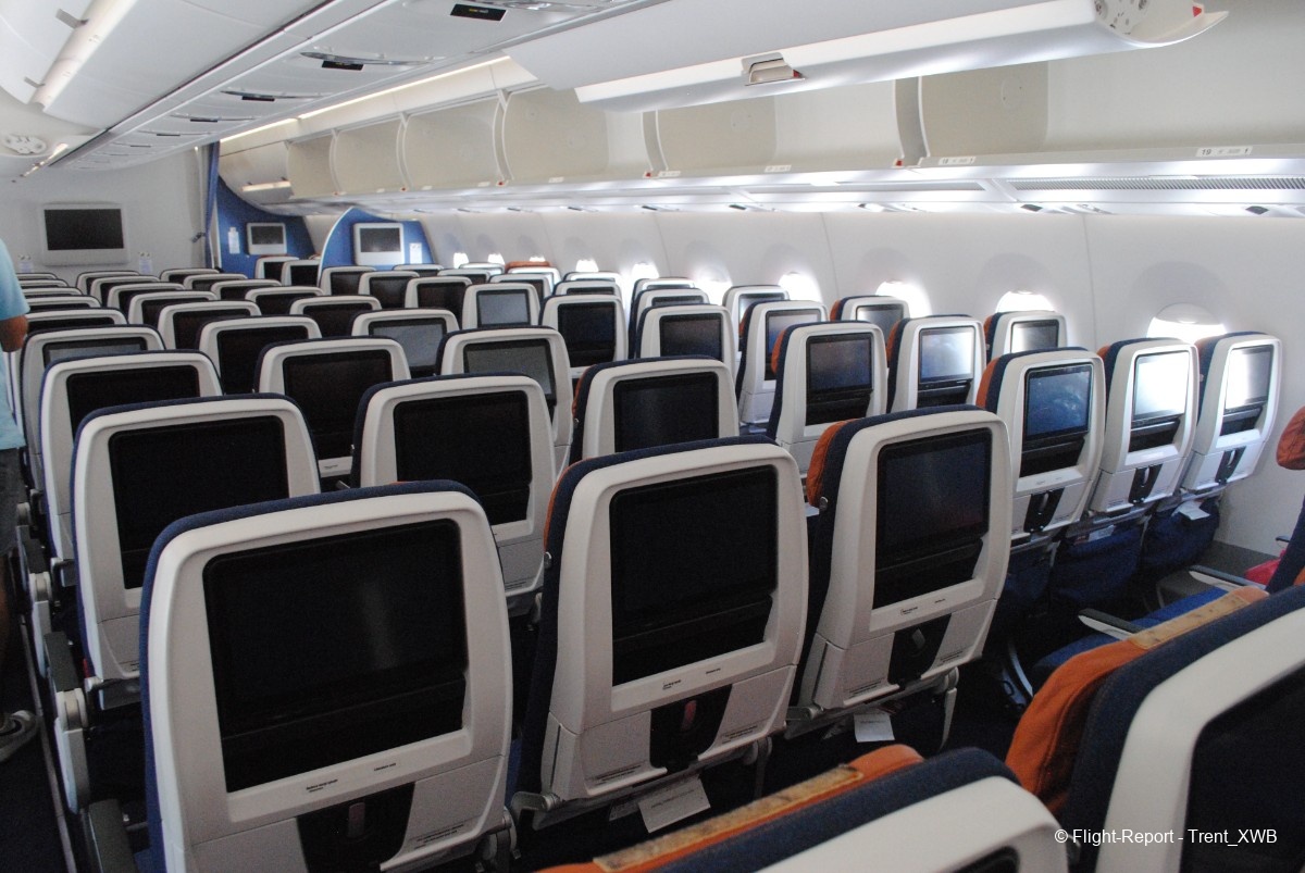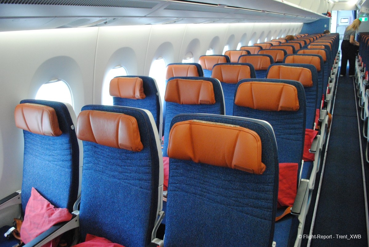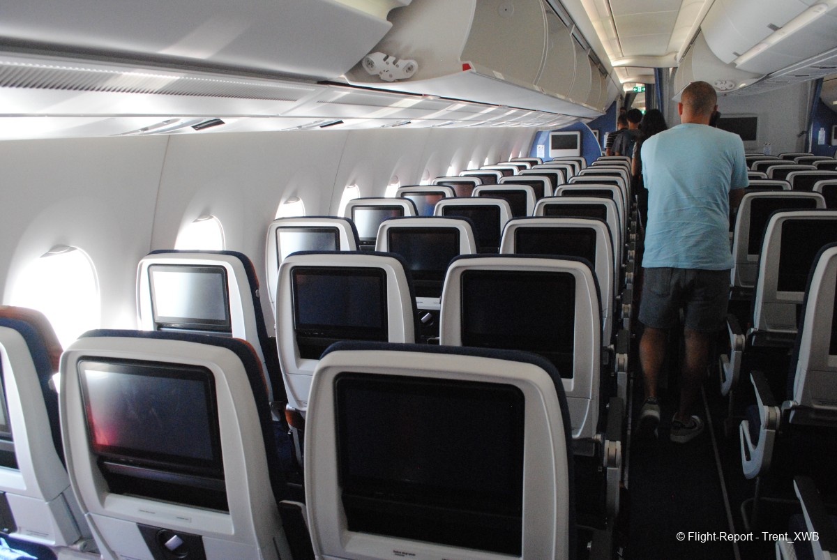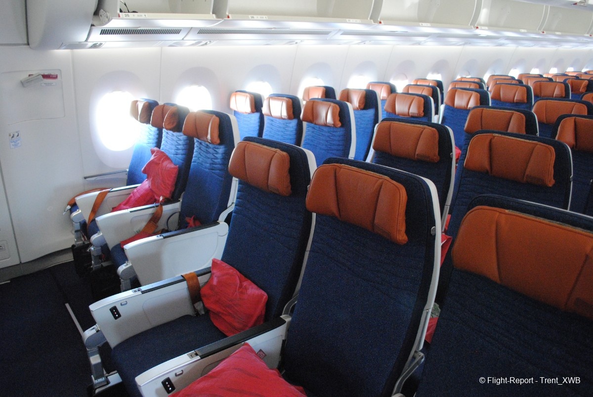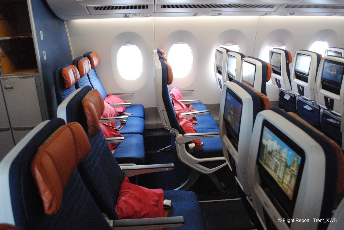 Then follows the economy class, consisting of 264 seats in 3-3-3 layout, distributed between two cabins: the front one between the premium economy and 3L/R doors, and the rear one between 3L/R and 4L/R doors.