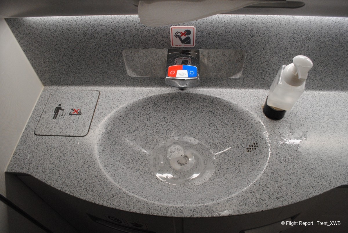The lavatories are pretty standart, but equipped with cosmetics, as usual in TK's widebodies.
