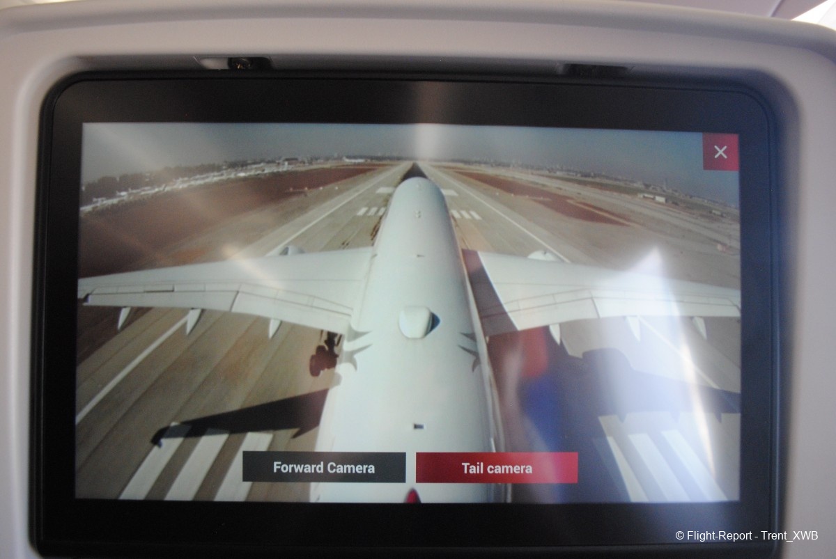 The best part of IFE in (almost) any A350 is the camera with multiple outside view. With the forward camera one can see the tug being connected to the front gear.
