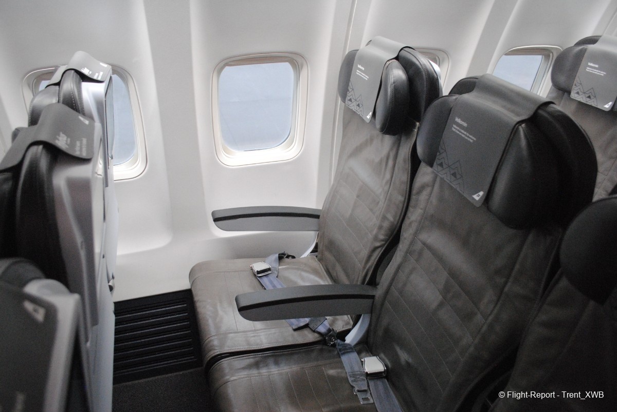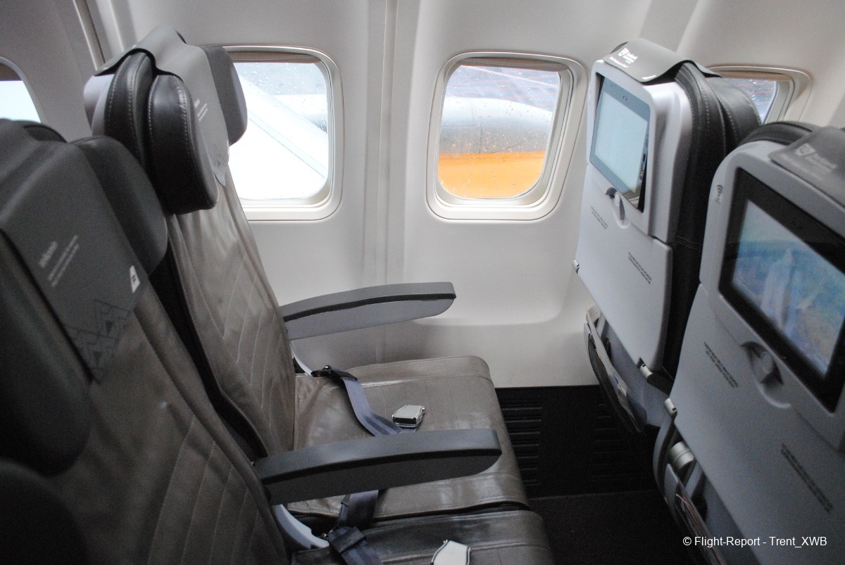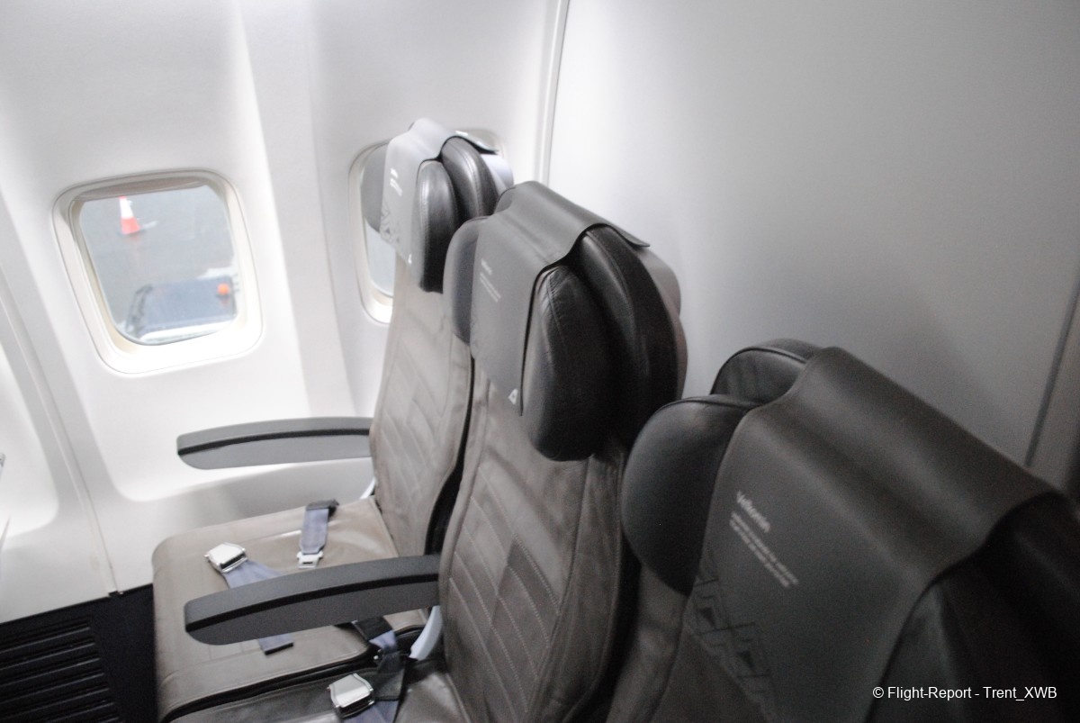 My seat is 38A in the rear economy cabin. The seat model is Aviointeriors Columbus. The seatwidth is 17.0" - due to narrow fuselage B757 cannot accomodate wider seats in 3-3 layout. Though, the cabin is not full and I got 3 seats for myself.