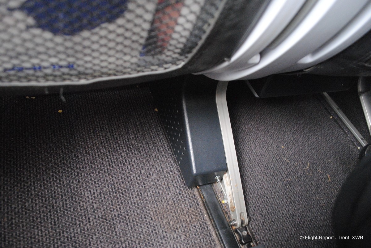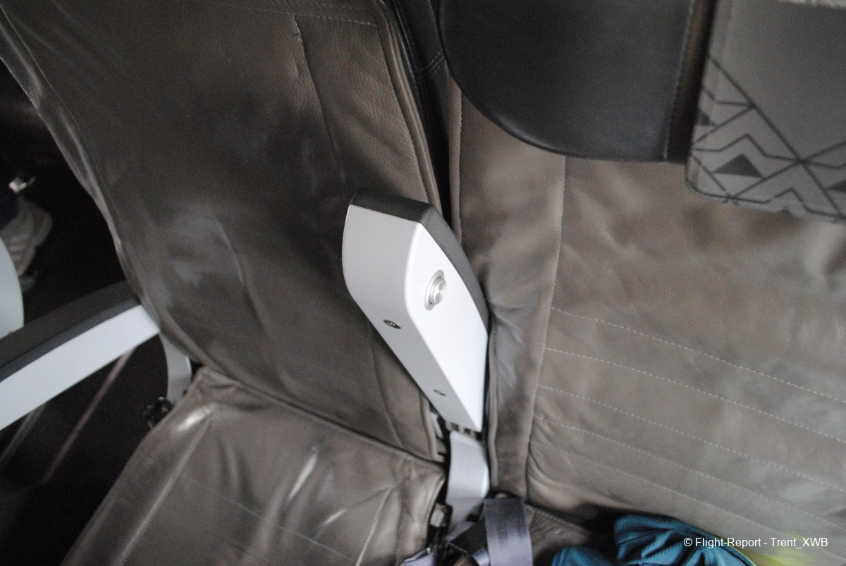 The seat has adjustable headrest, limited rise for armrests (only half-way up), modern IFE with USB port, tray table and seat pocket. There's an underseat power box for IFE, but with 3 seats for myself it was not a problem.